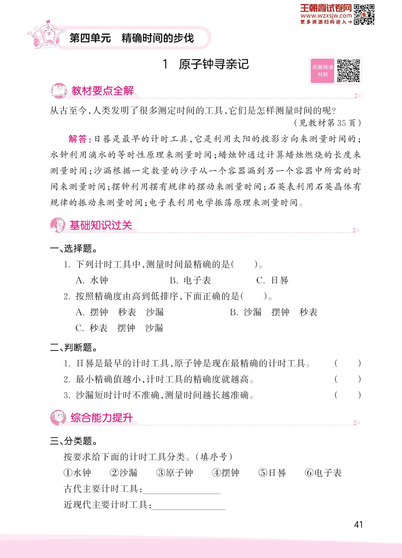 2023下册四年级科学大象版 第四单元 精确时间的步伐——1 原子钟寻亲记
