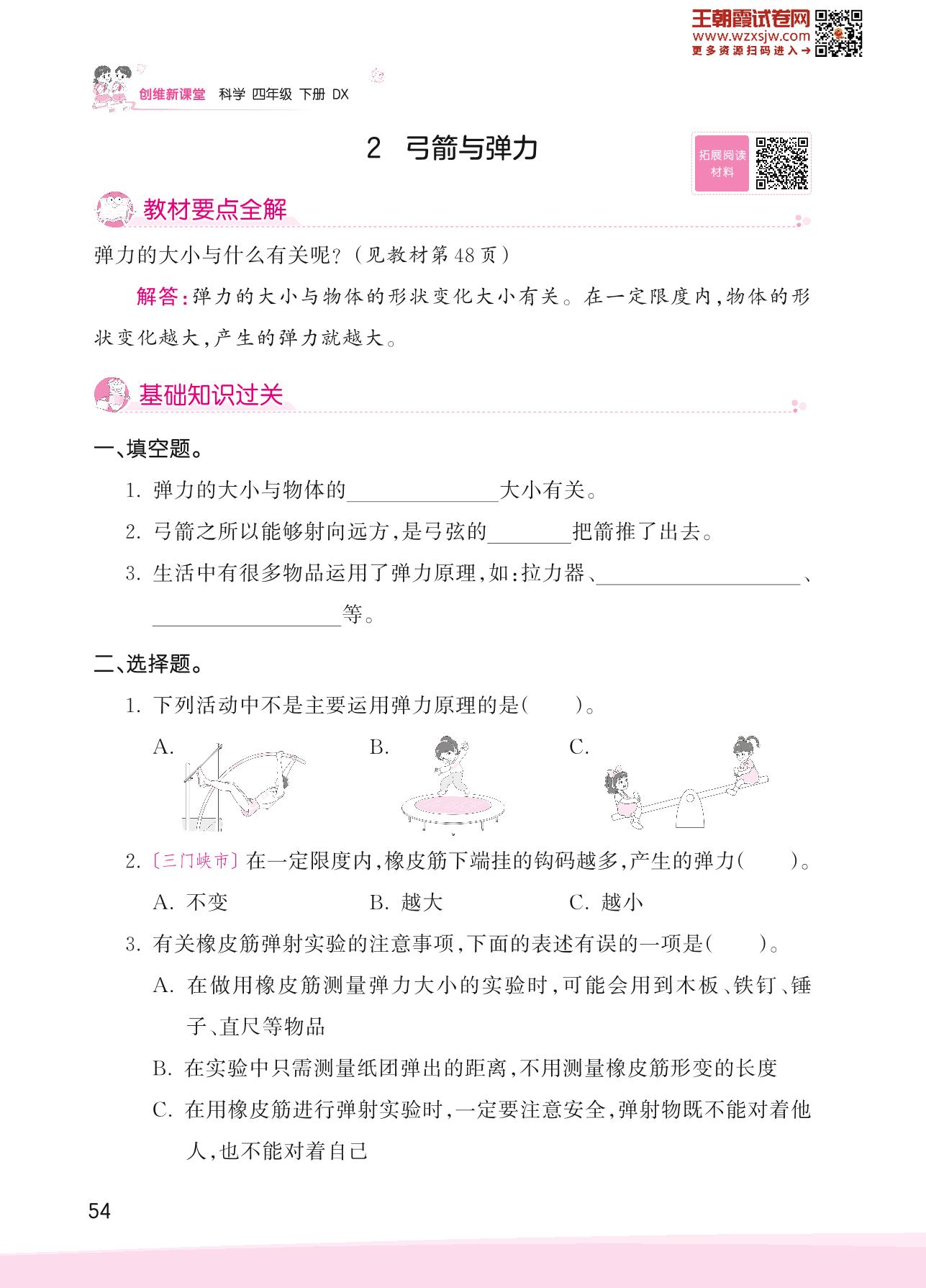 2023下册四年级科学大象版 第五单元 开心游乐场——2 弓箭与弹力