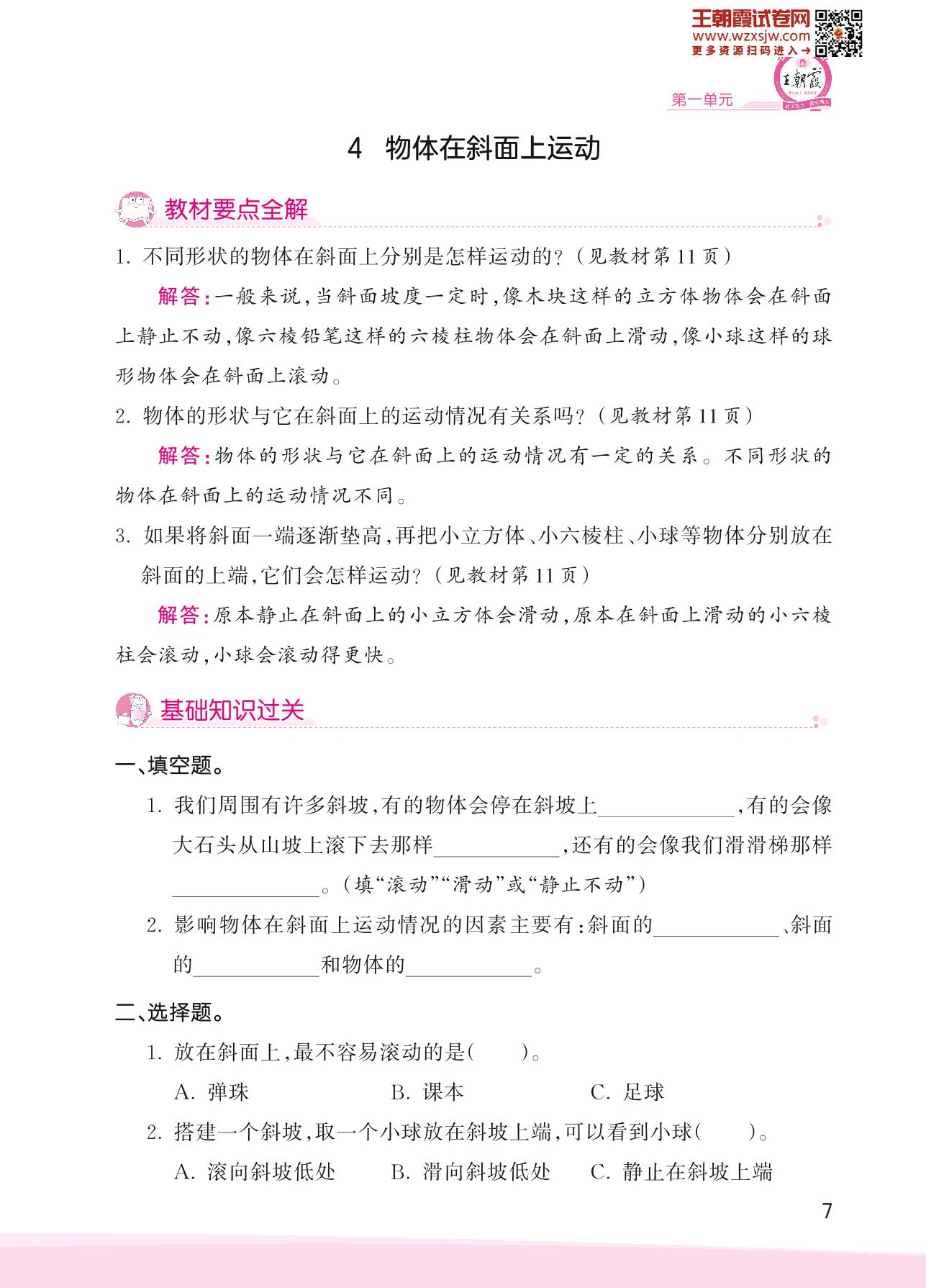 2023下册三年级科学教科版 第一单元 物体的运动——4 物体在斜面上运动