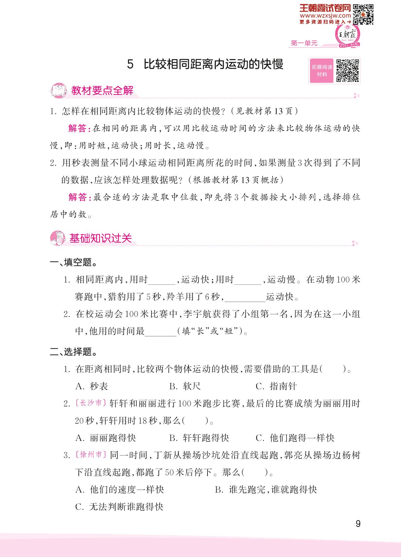 2023下册三年级科学教科版 第一单元 物体的运动——5 比较相同距离内运动的快慢