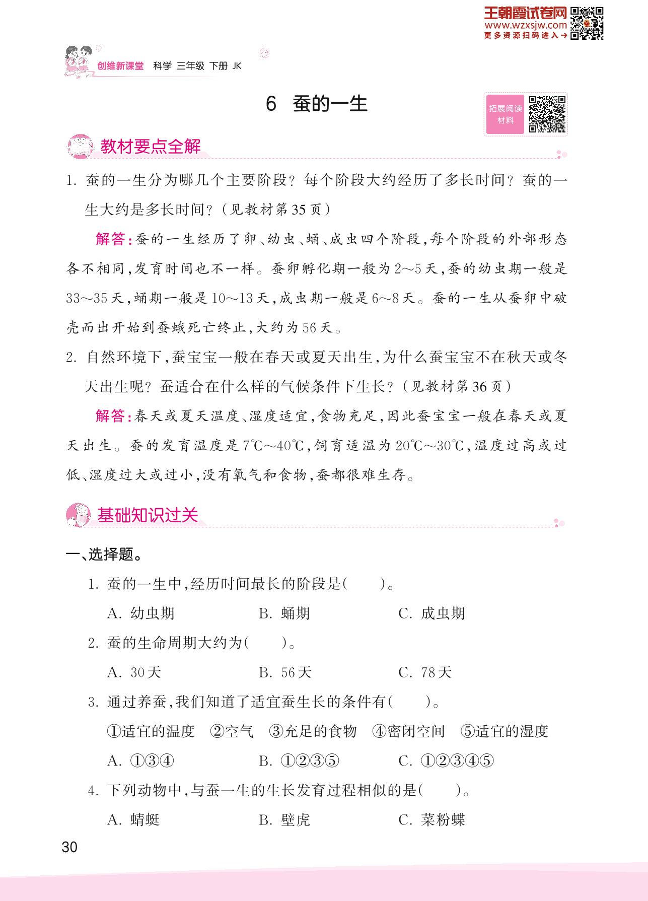 2023下册三年级科学教科版 第二单元 动物的一生——6 蚕的一生