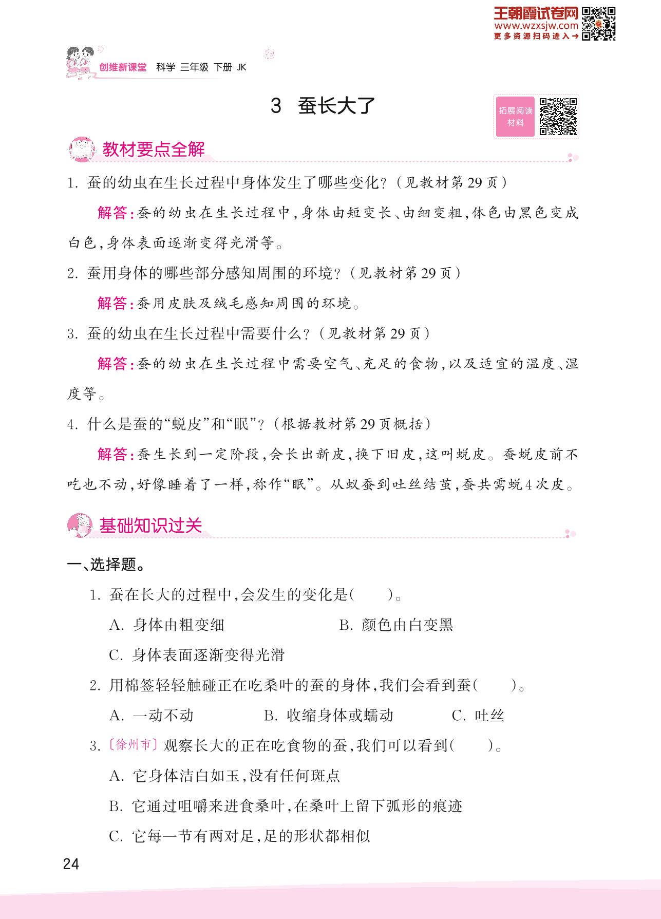 2023下册三年级科学教科版 第二单元 动物的一生——3 蚕长大了
