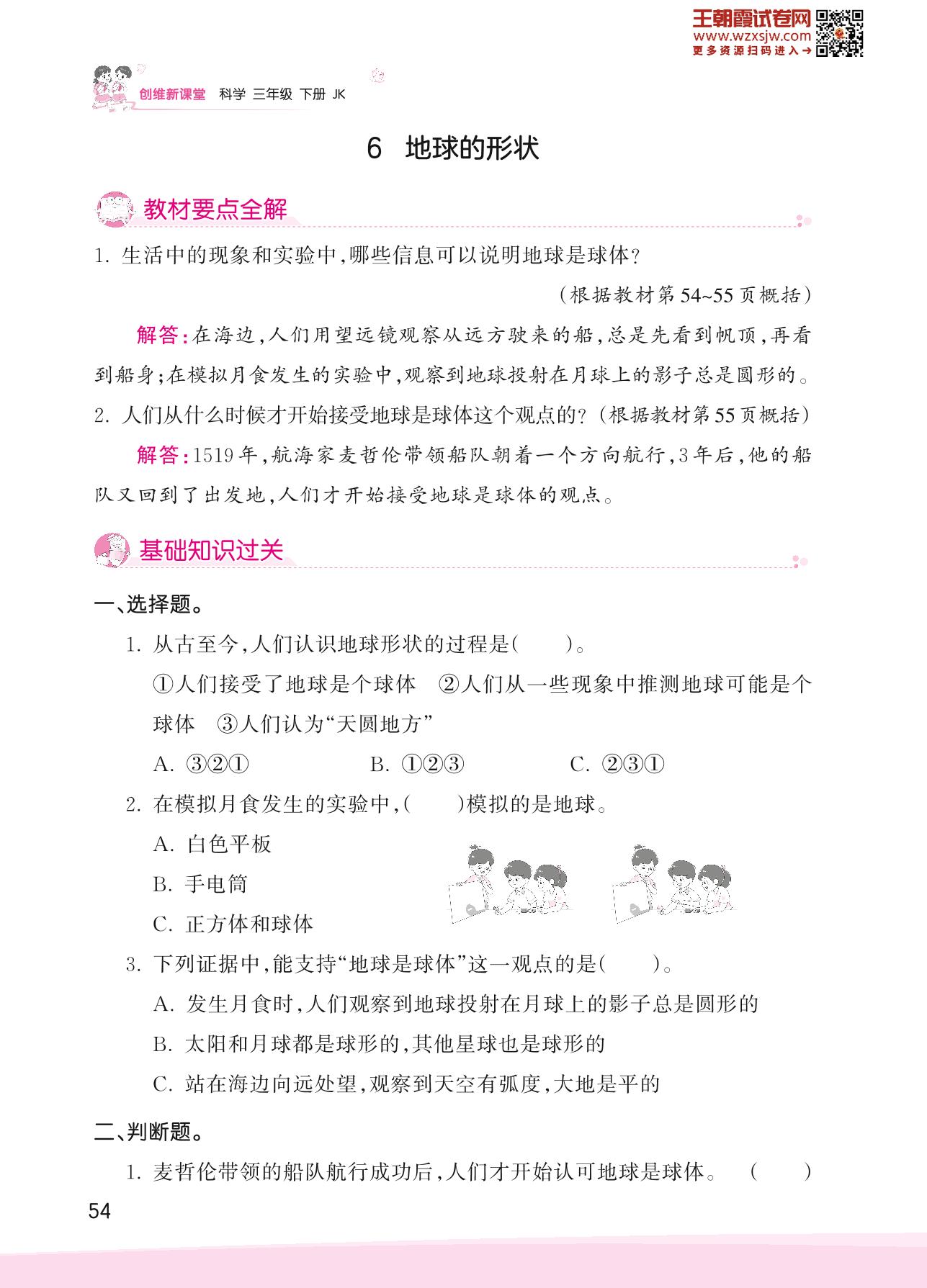 2023下册三年级科学教科版 第三单元 太阳、地球和月球——6 地球的形状