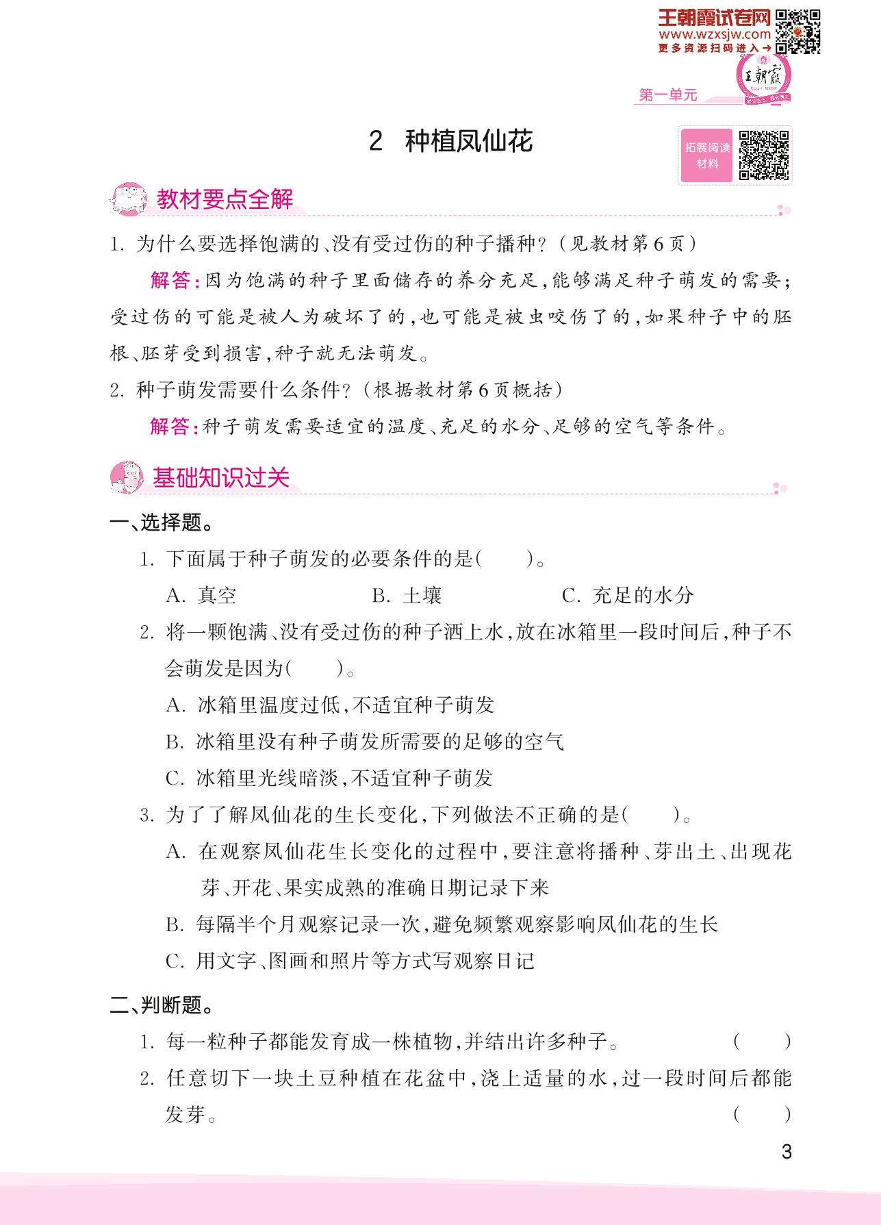 2023下册四年级科学教科版 第一单元 植物的生长变化——2 种植凤仙花