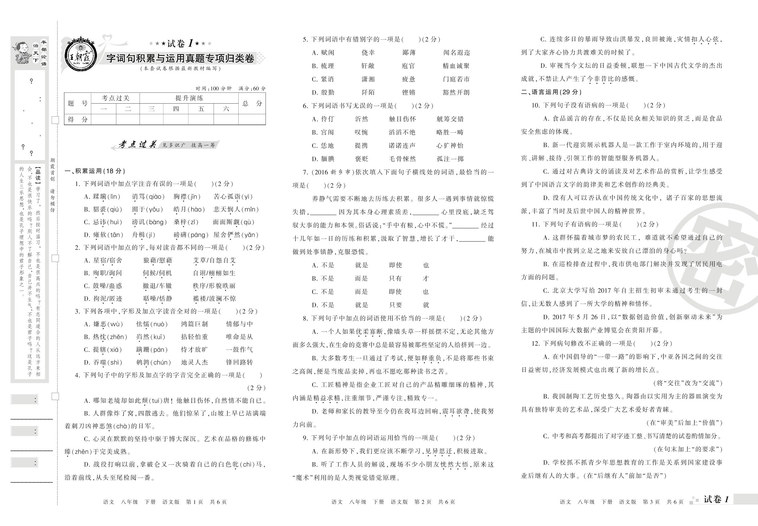 八年级语文语文版下册专项卷