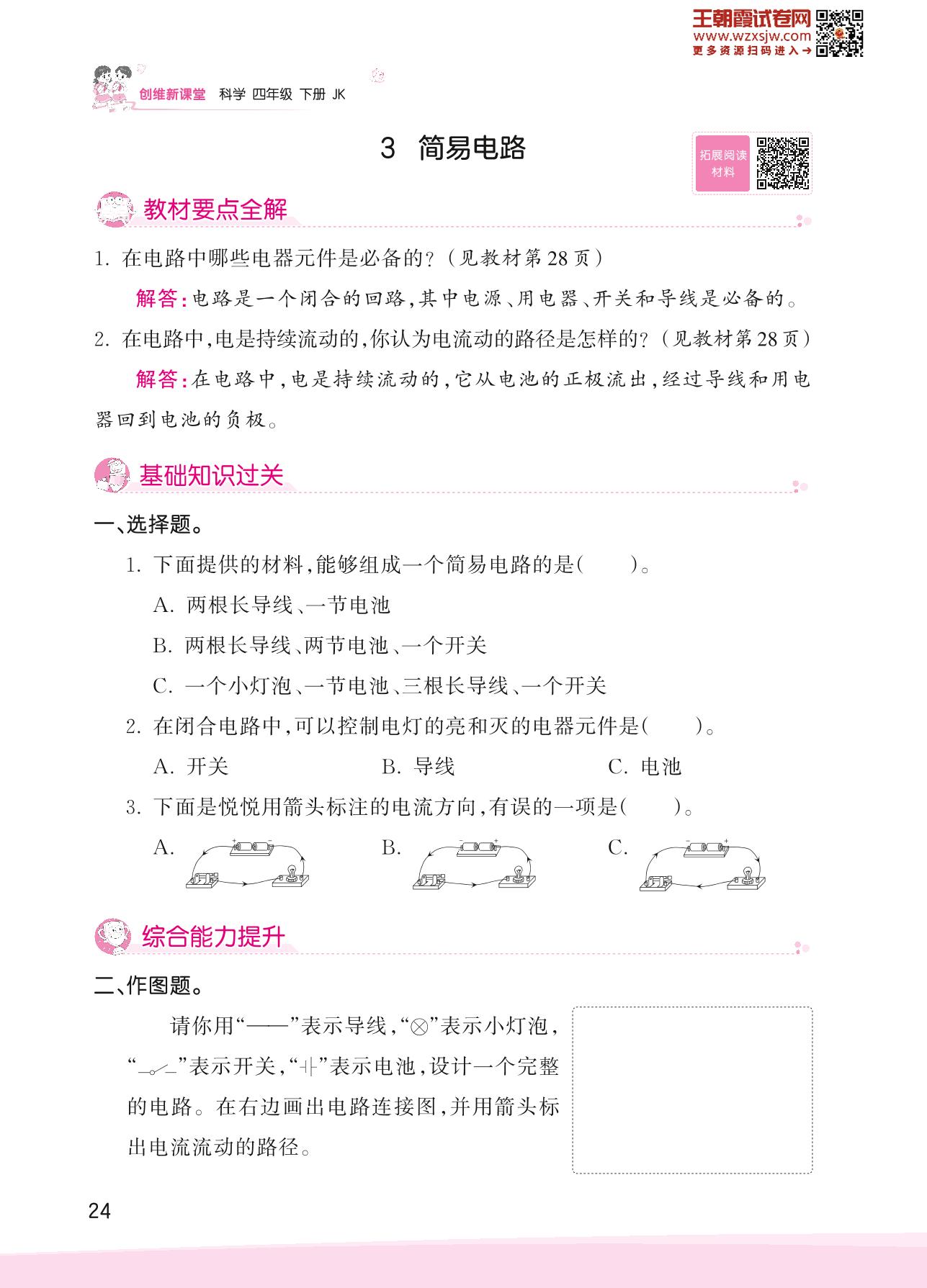 2023下册四年级科学教科版 第二单元 电路——3 简易电路