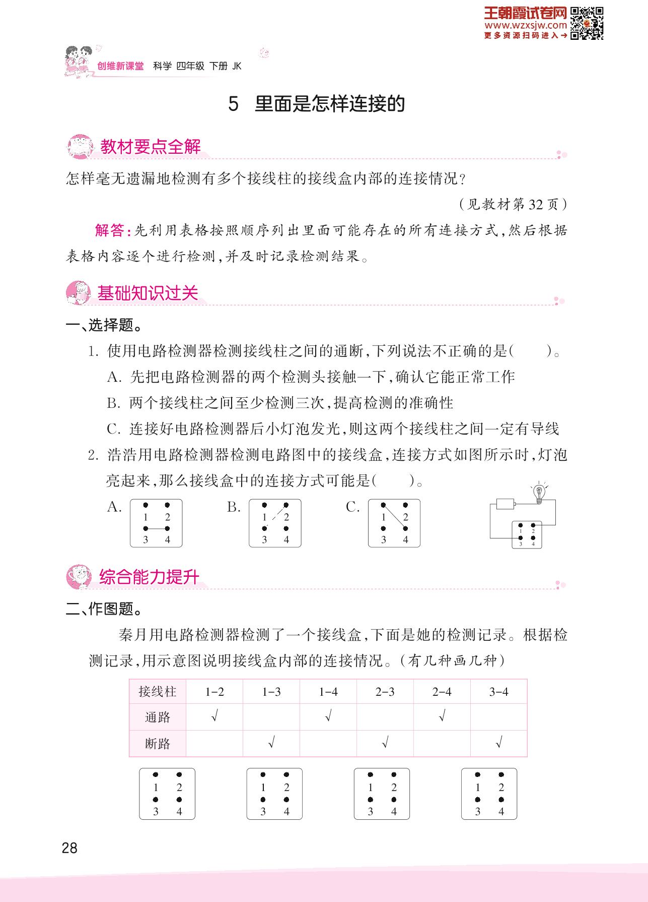 2023下册四年级科学教科版 第二单元 电路——5 里面是怎样连接的