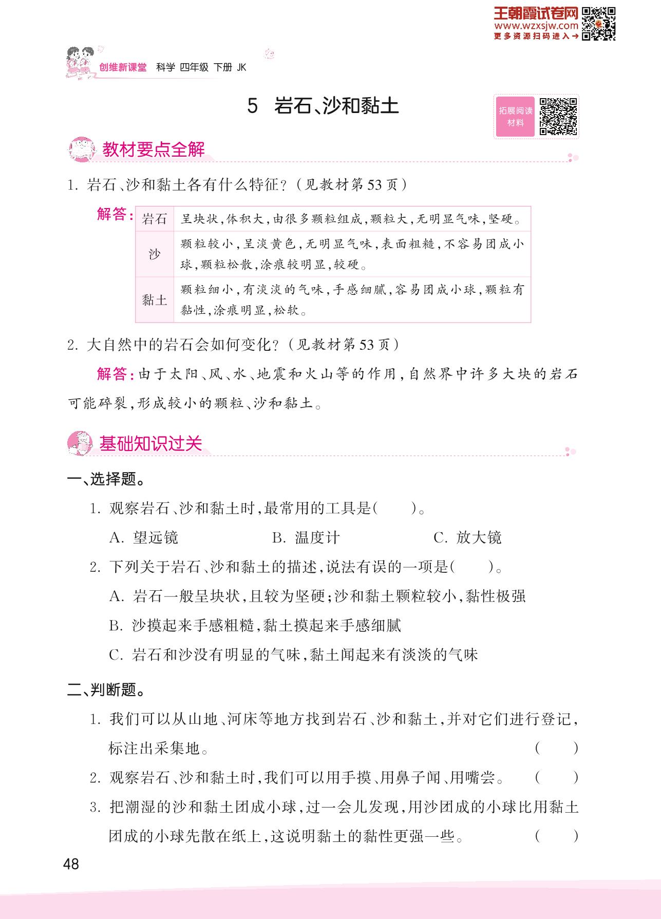 2023下册四年级科学教科版 第三单元 岩石与土壤——5 岩石、沙和黏土