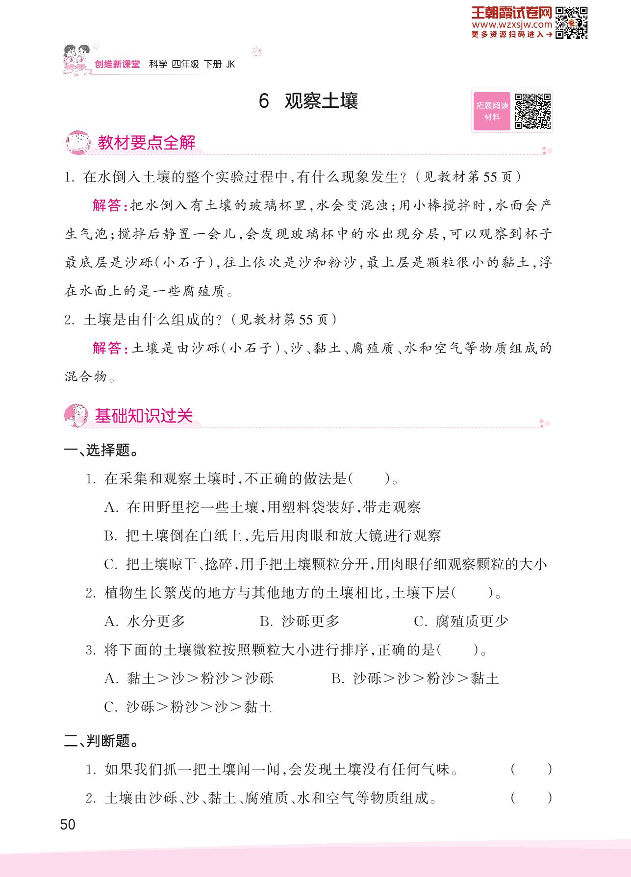 2023下册四年级科学教科版 第三单元 岩石与土壤——6 观察土壤
