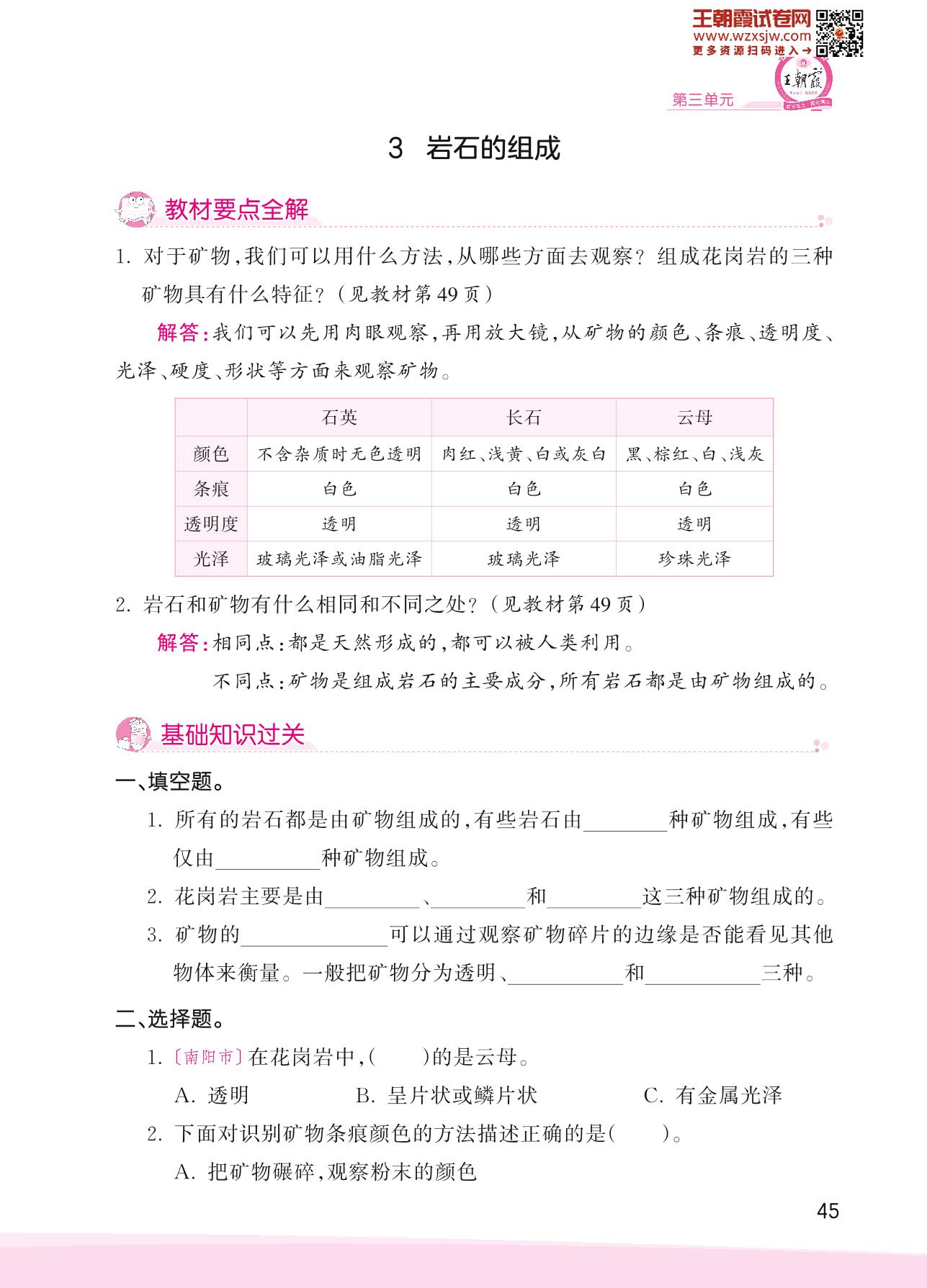 2023下册四年级科学教科版 第三单元 岩石与土壤——3 岩石的组成