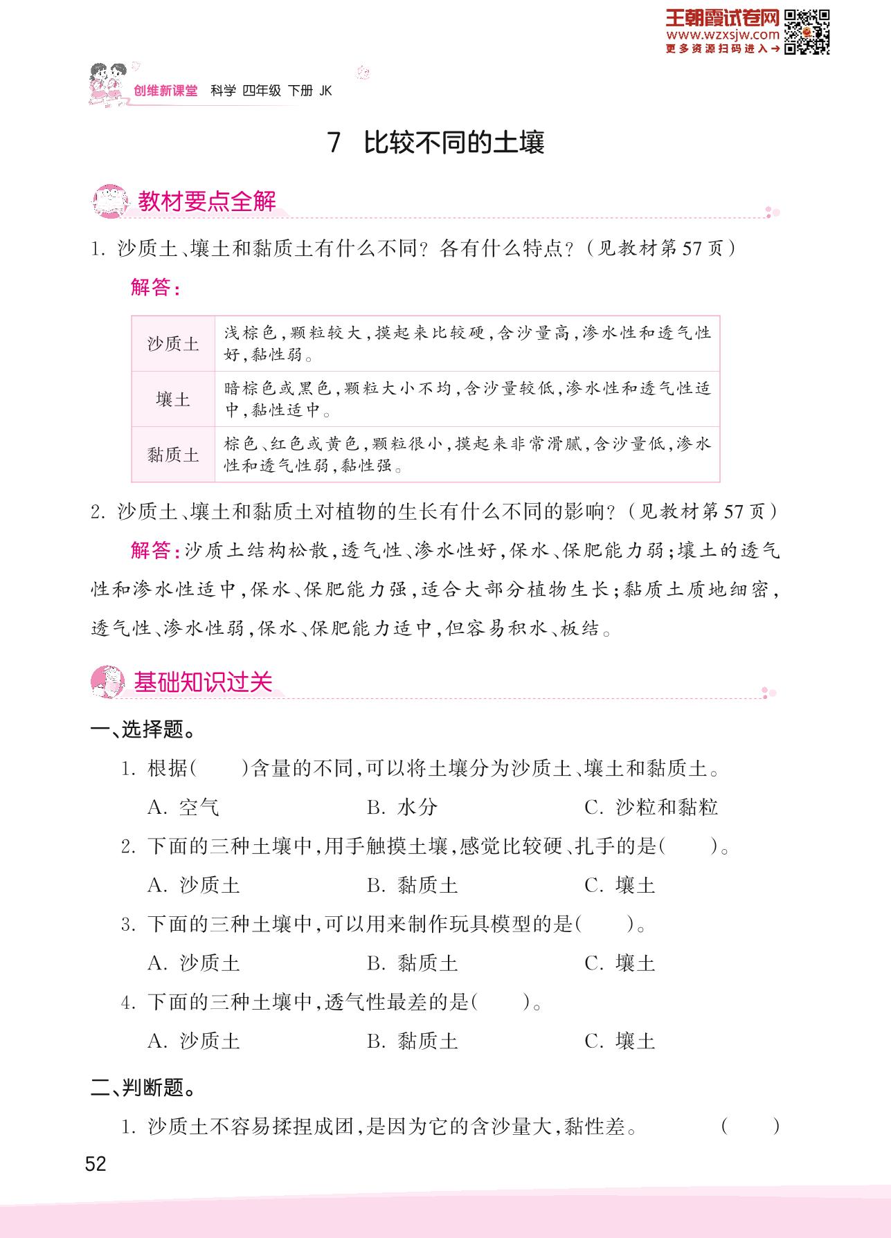 2023下册四年级科学教科版 第三单元 岩石与土壤——7 比较不同的土壤