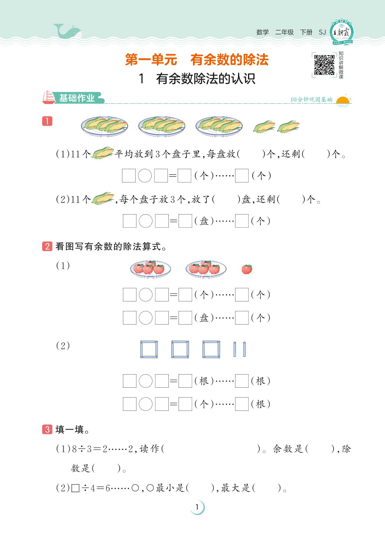 2023下册二年级数学苏教版 第一单元 有余数的除法——1 有余数除法的认识