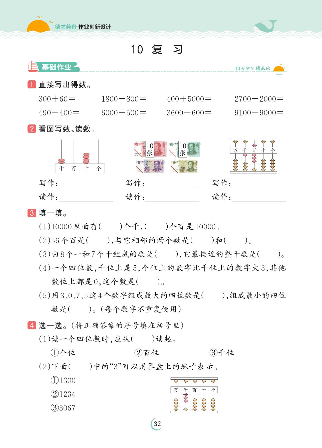 2023下册二年级数学苏教版 第四单元 认识万以内的数——10 复习