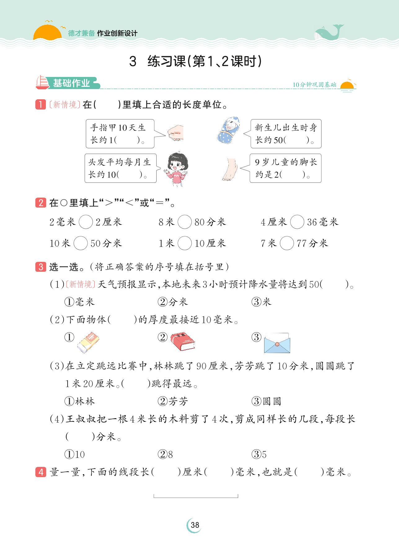 2023下册二年级数学苏教版 第五单元 分米和毫米——3 练习课(第1、2课时)