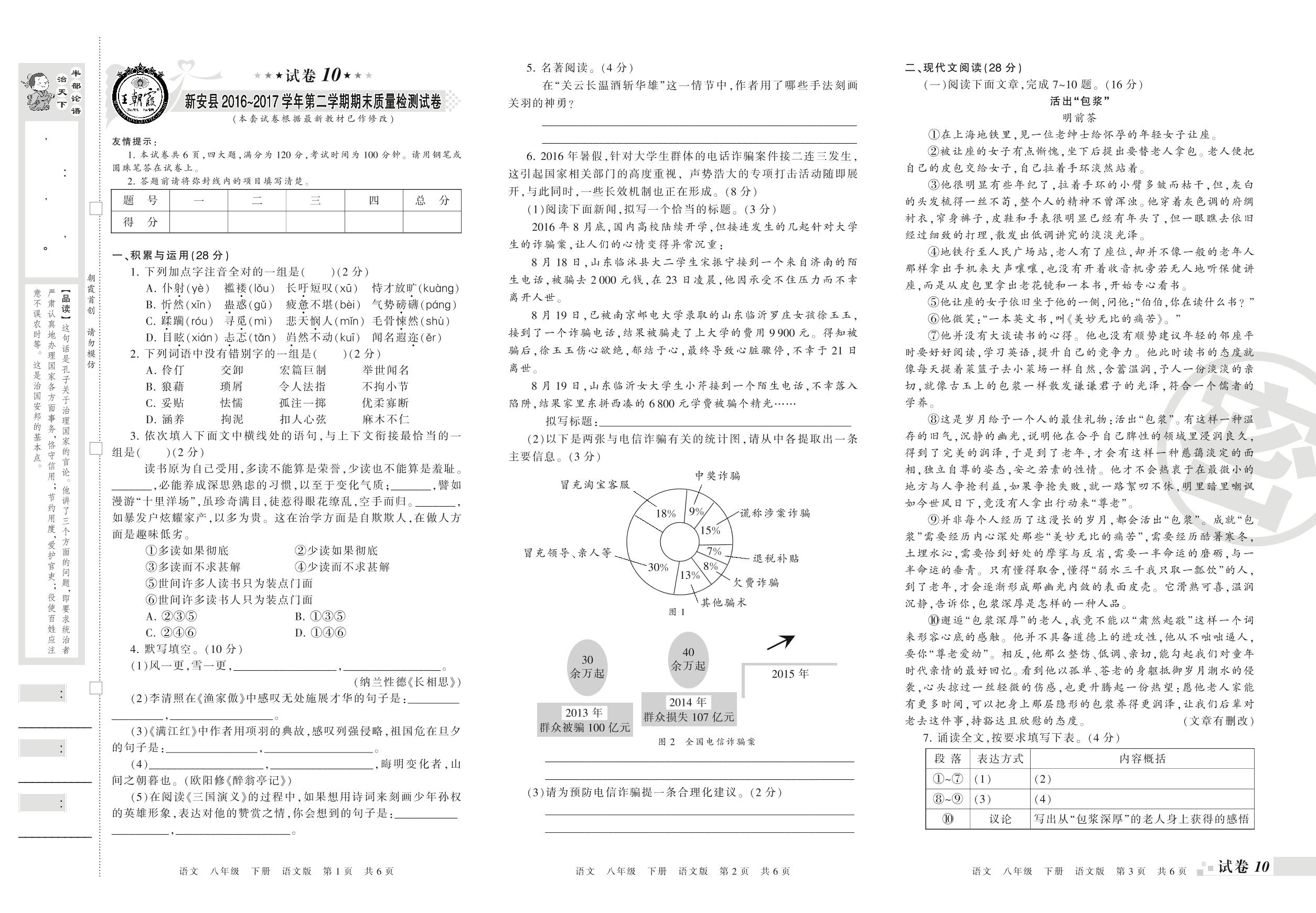 2016-2017学年第二学期新安县八年级语文试卷(语文版)【10】
