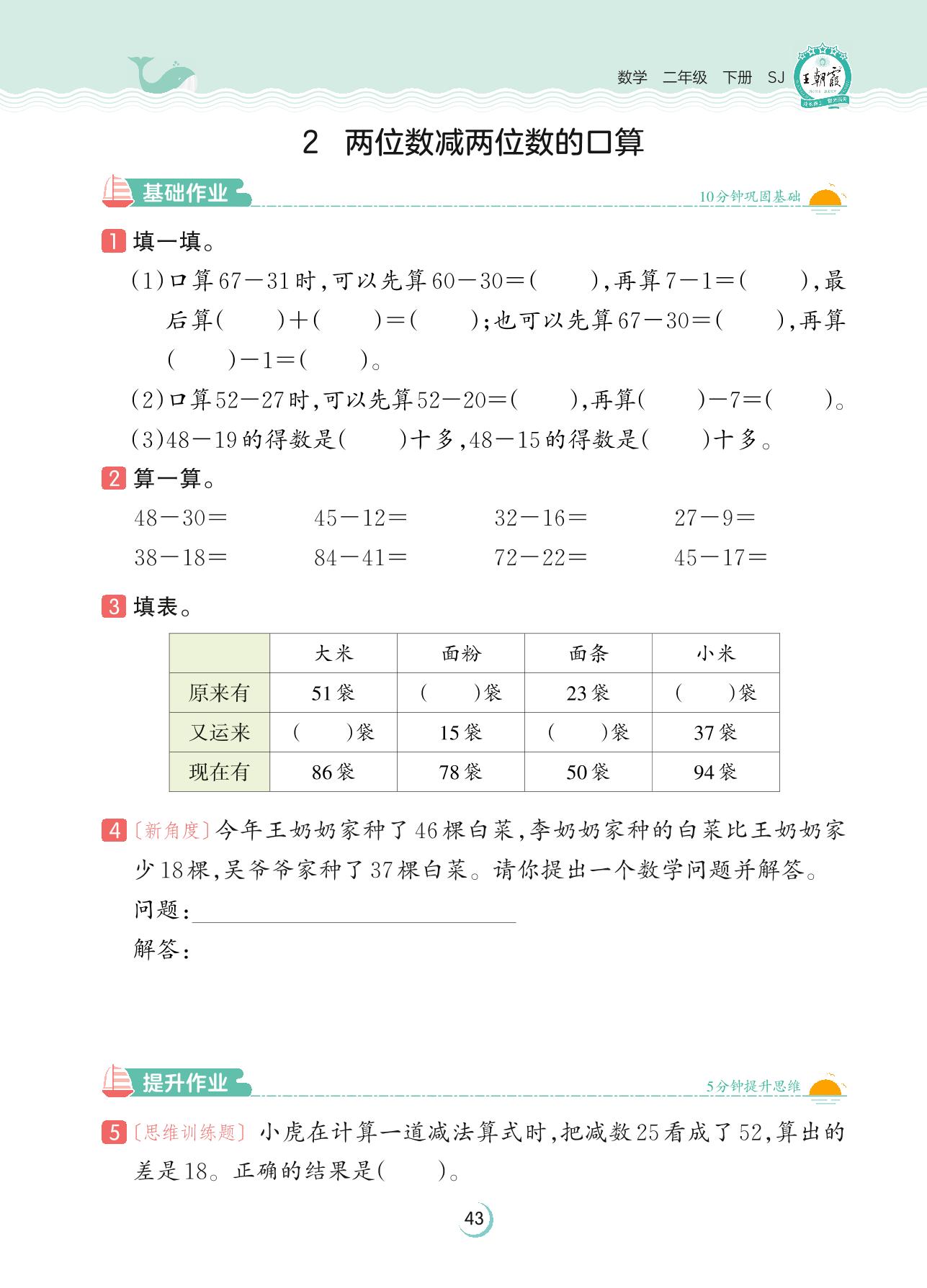 2023下册二年级数学苏教版 第六单元 两、三位数的加法和减法——2 两位数减两位数的口算