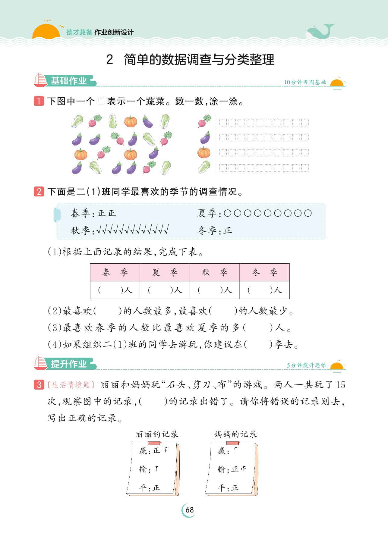 2023下册二年级数学苏教版 第八单元 数据的收集和整理(一)——2 简单的数据调查与分类整理