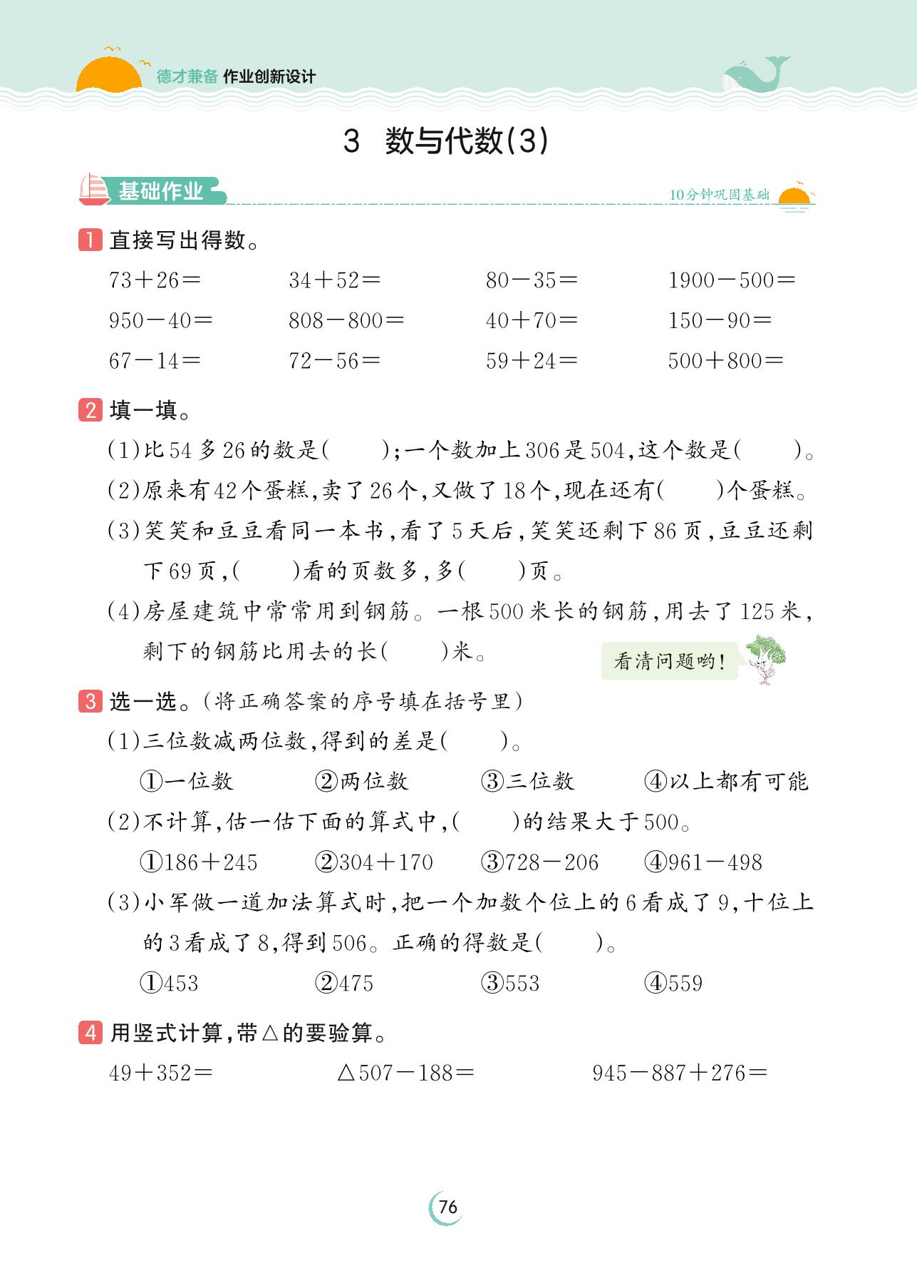2023下册二年级数学苏教版 第九单元 期末复习——3 数与代数(3)