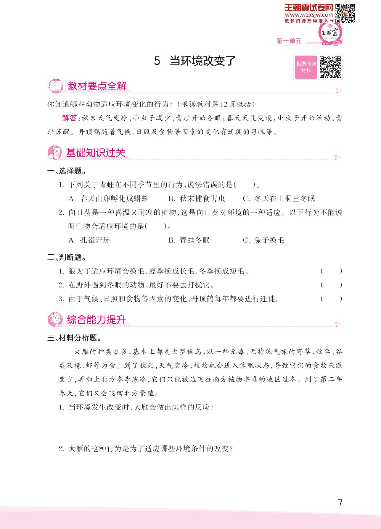 2023下册五年级科学教科版 第一单元 生物与环境——5 当环境改变了