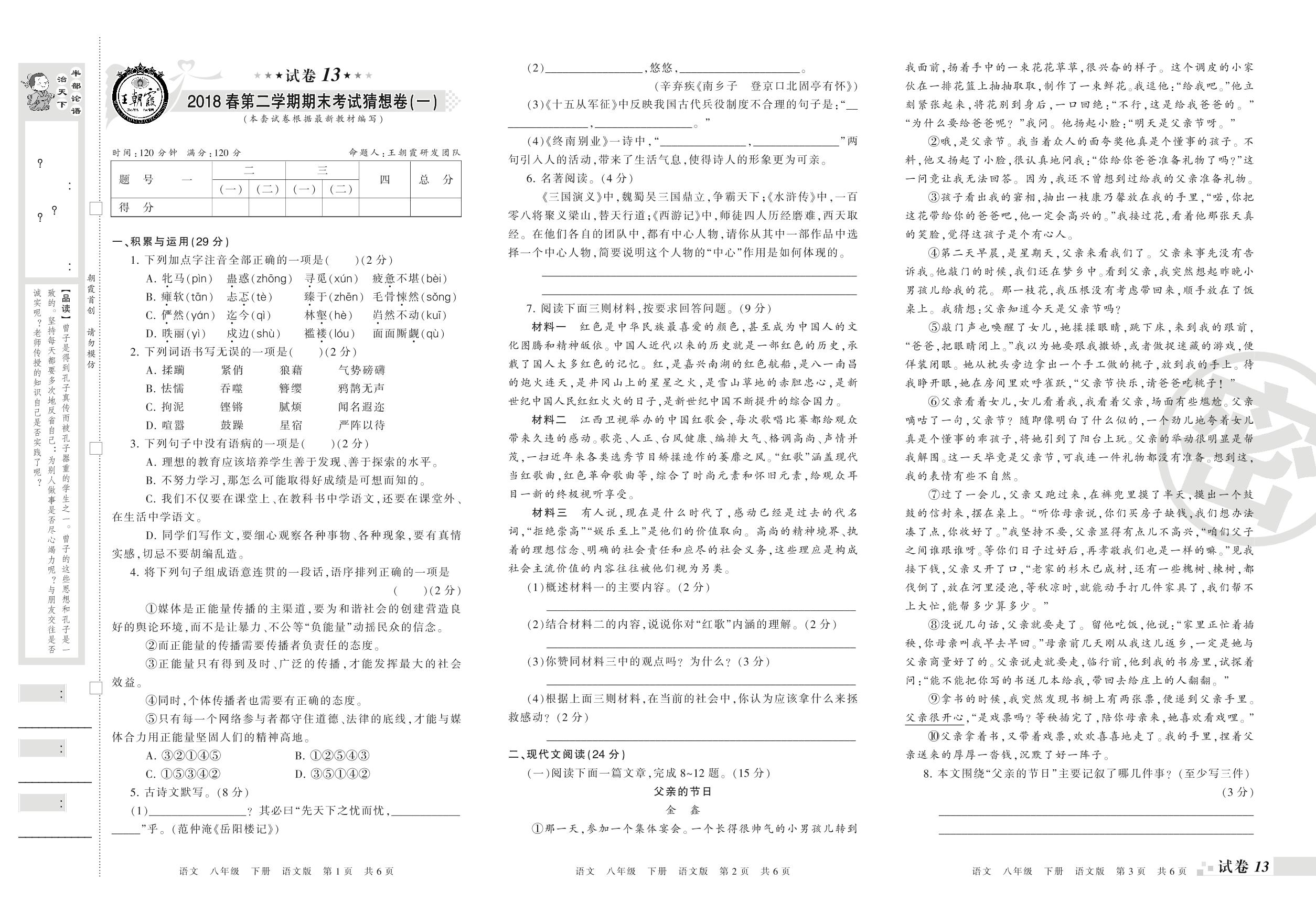 王朝霞期末猜想卷八年级下册语文(语文版)_R210802184727【13】