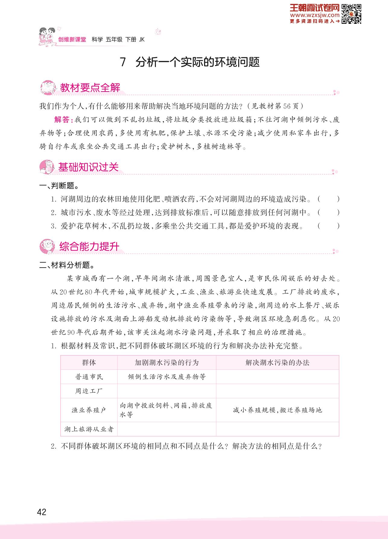 2023下册五年级科学教科版 第三单元 环境与我们——7 分析一个实际的环境问题