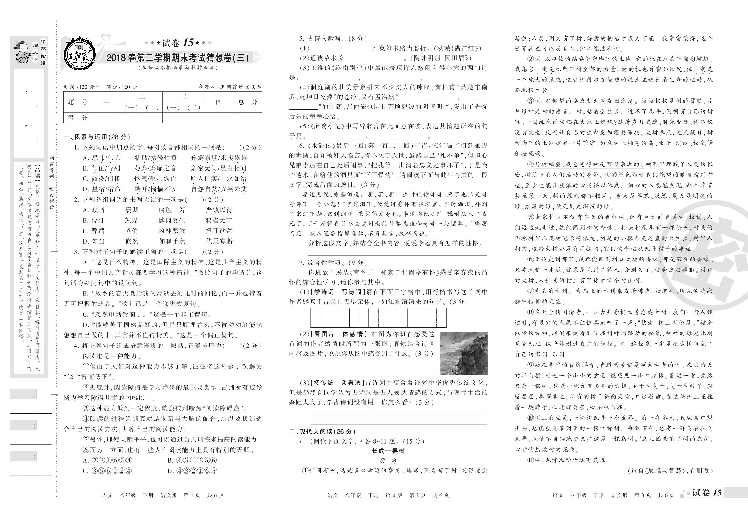 王朝霞期末猜想卷八年级下册语文(语文版)_R210802184731【15】