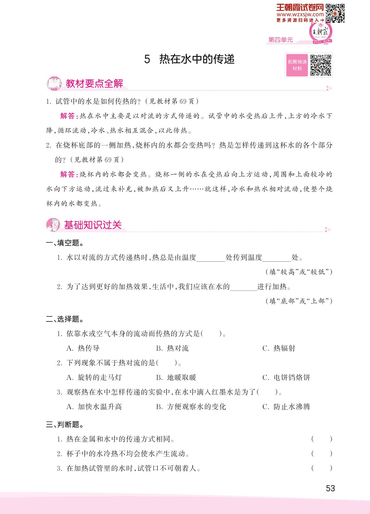 2023下册五年级科学教科版 第四单元 热——5 热在水中的传递