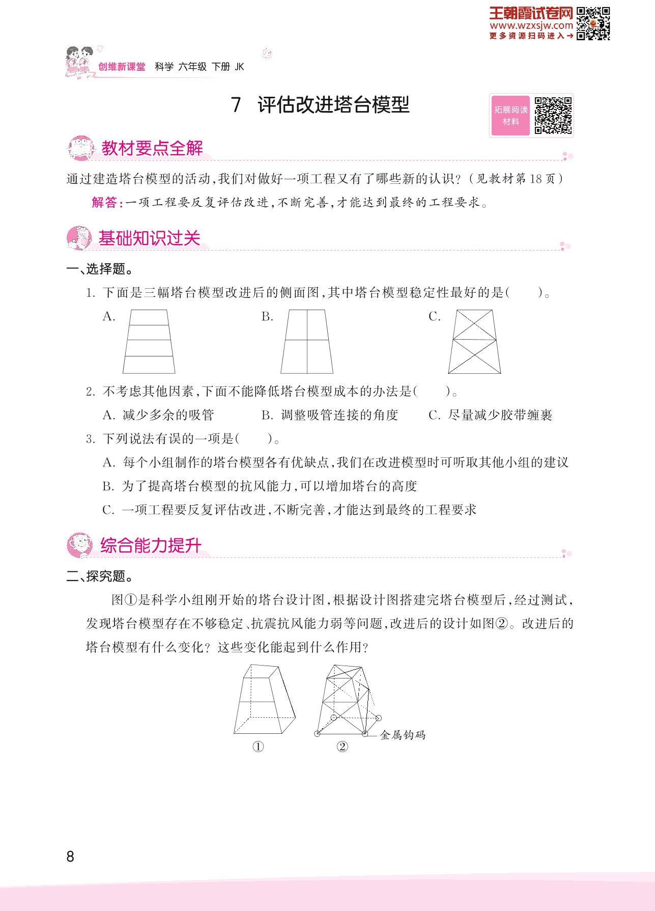 2023下册六年级科学教科版 第一单元 小小工程师——7 评估改进塔台模型