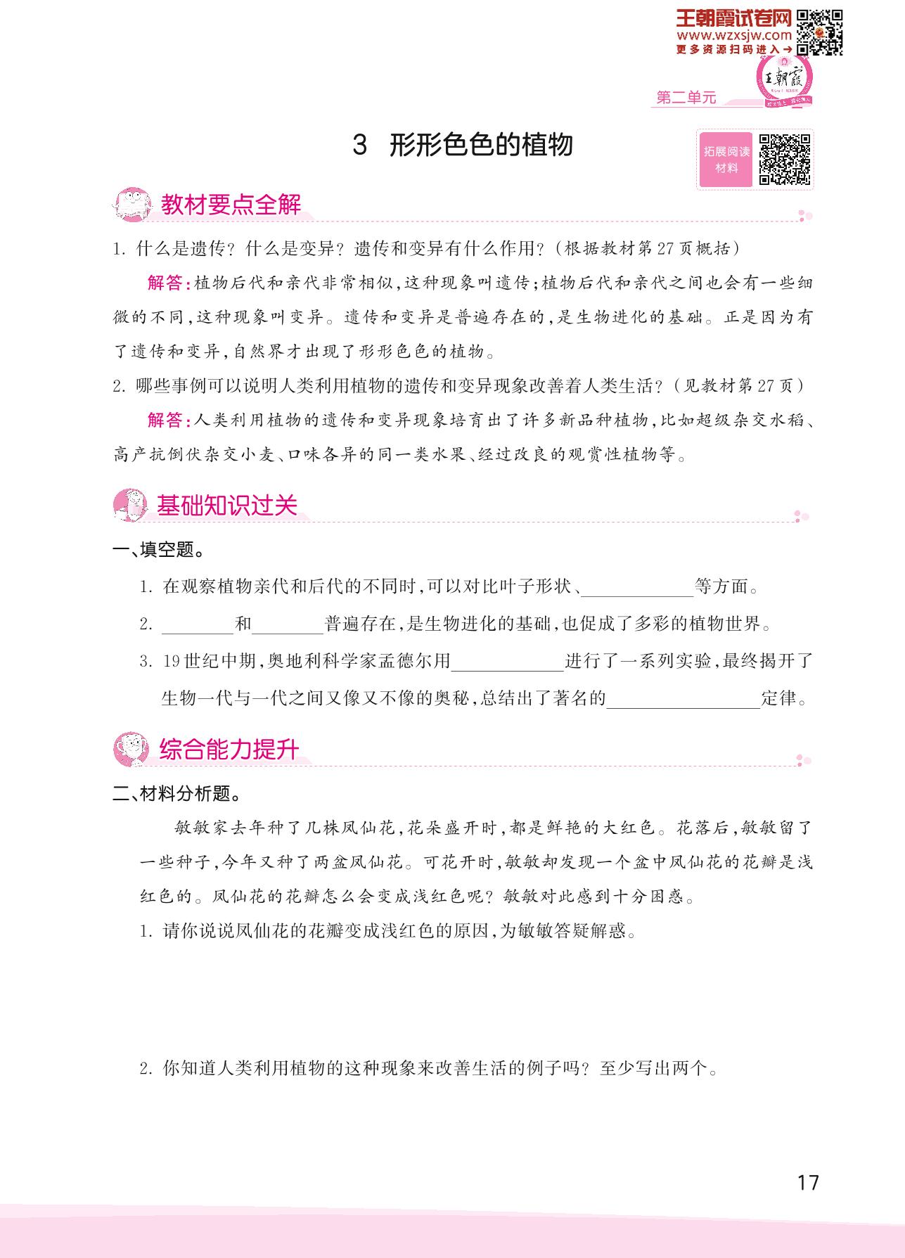 2023下册六年级科学教科版 第二单元 生物的多样性——3 形形色色的植物