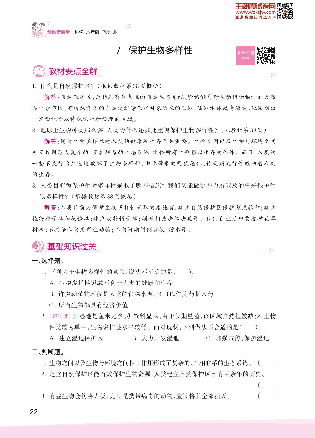 2023下册六年级科学教科版 第二单元 生物的多样性——7 保护生物多样性