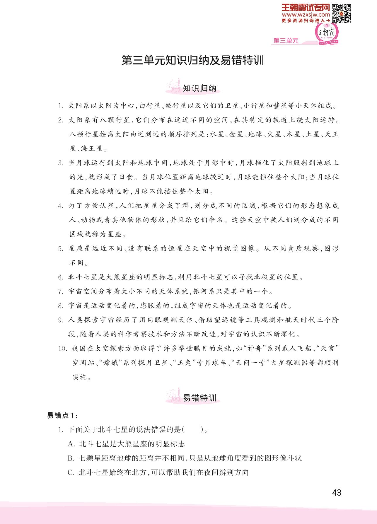 2023下册六年级科学教科版 第三单元知识归纳及易错特训