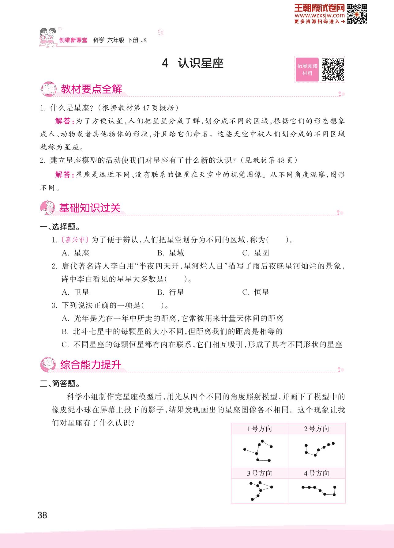 2023下册六年级科学教科版 第三单元 宇宙——4 认识星座