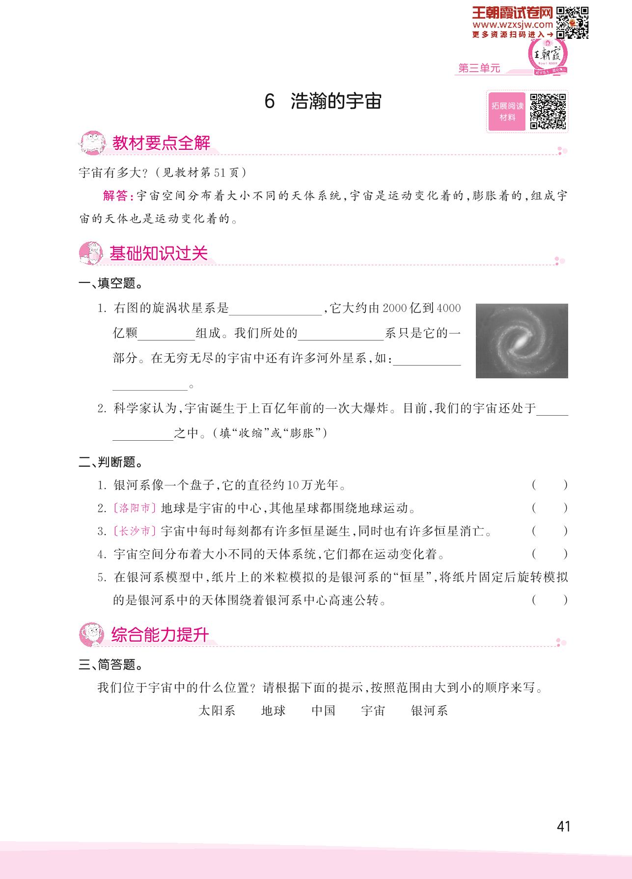 2023下册六年级科学教科版 第三单元 宇宙——6 浩瀚的宇宙