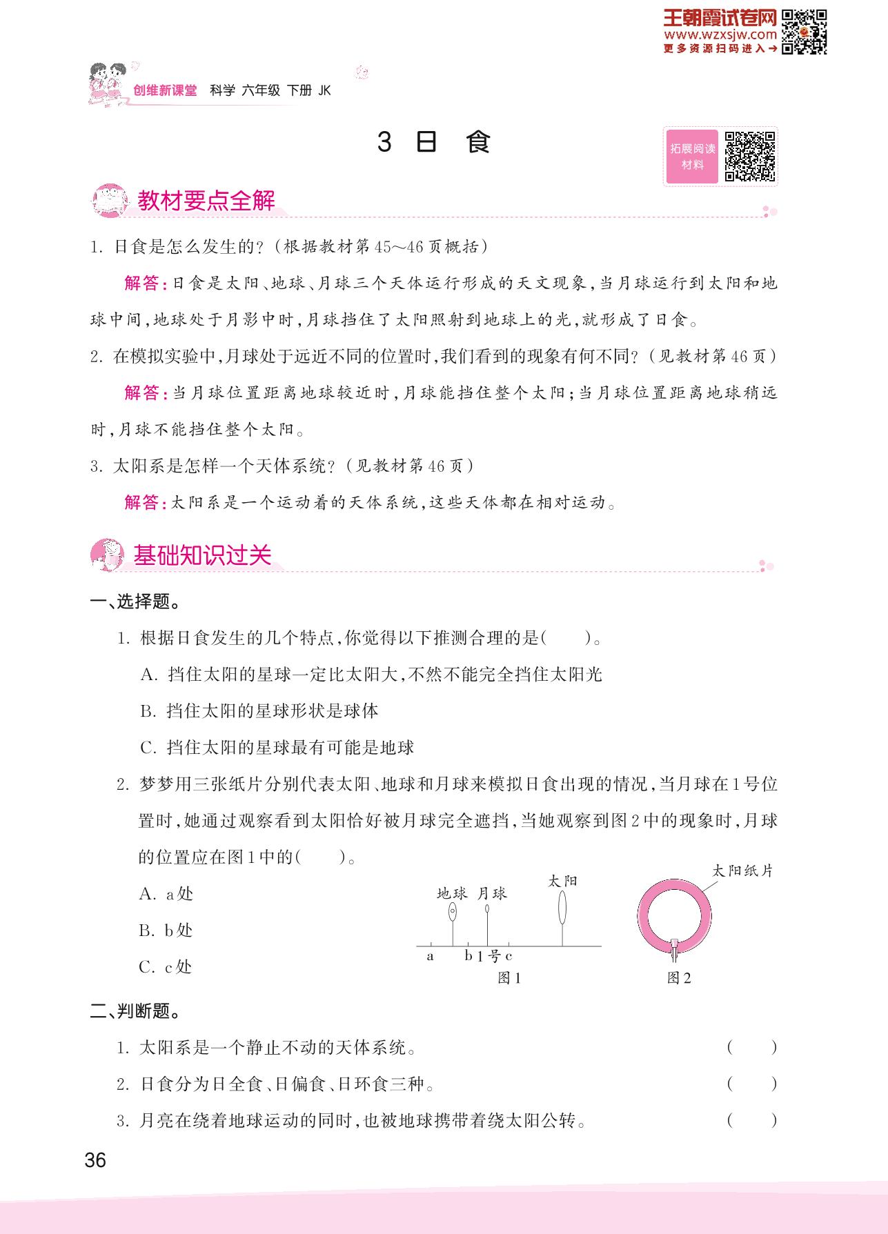2023下册六年级科学教科版 第三单元 宇宙——3 日食