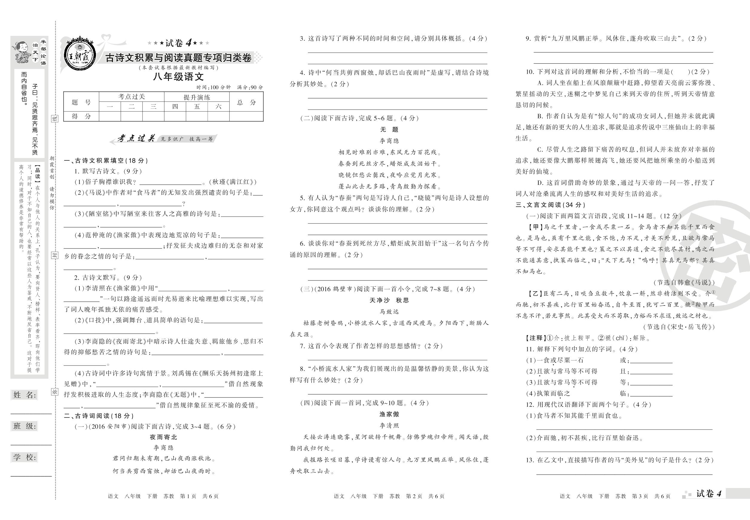 王朝霞期末专项卷——古诗文积累与阅读真题专项归类卷八年级下册语文(苏教版)_R210802184757【4】