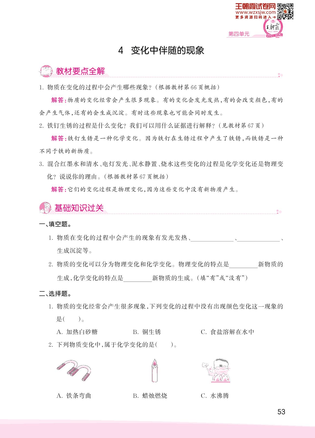 2023下册六年级科学教科版 第四单元 物质的变化——4 变化中伴随的现象