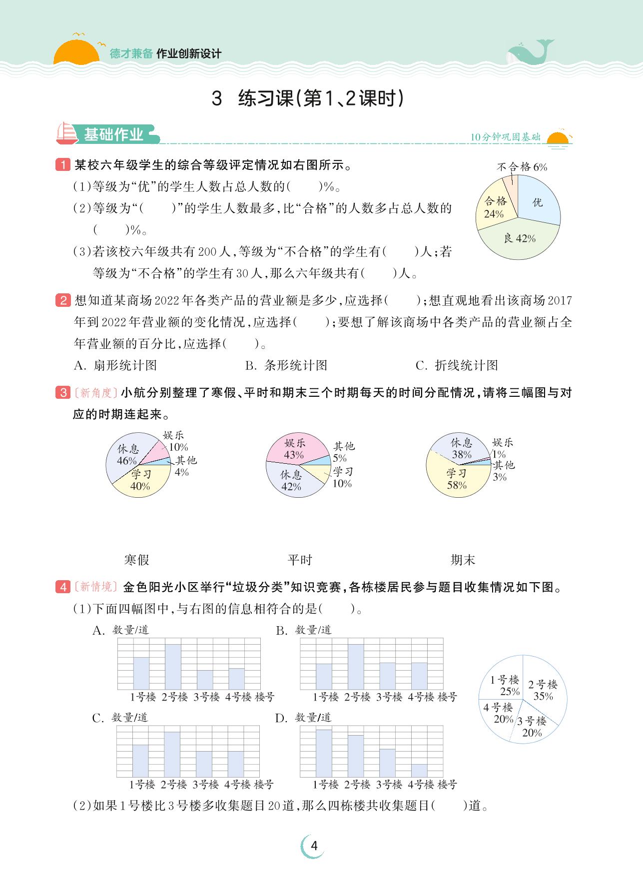 2023下册六年级数学苏教版 第一单元 扇形统计图——3 练习课(第1、2课时)