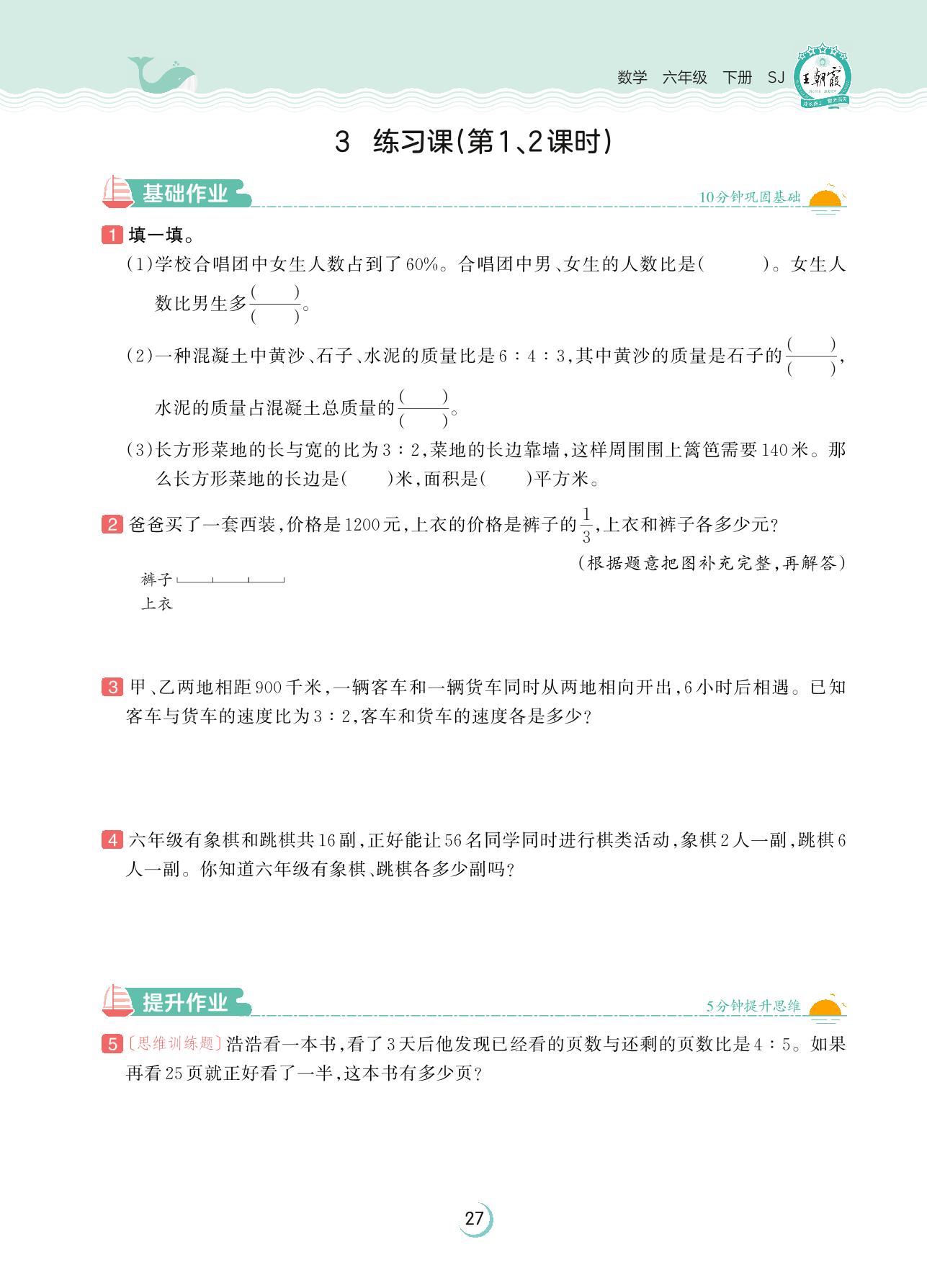 2023下册六年级数学苏教版 第三单元 解决问题的策略——3 练习课(第1、2课时)