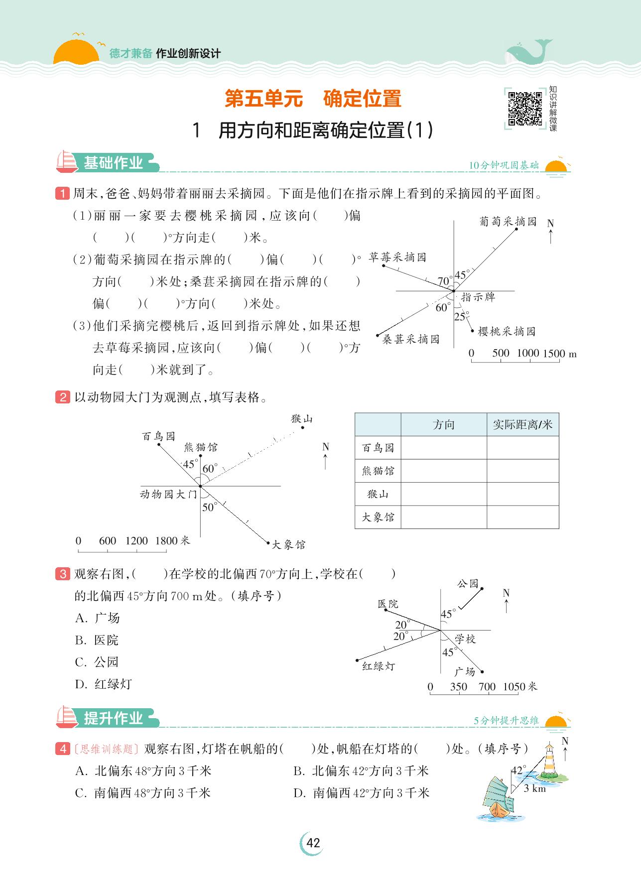 2023下册六年级数学苏教版 第五单元 确定位置——1 用方向和距离确定位置(1)