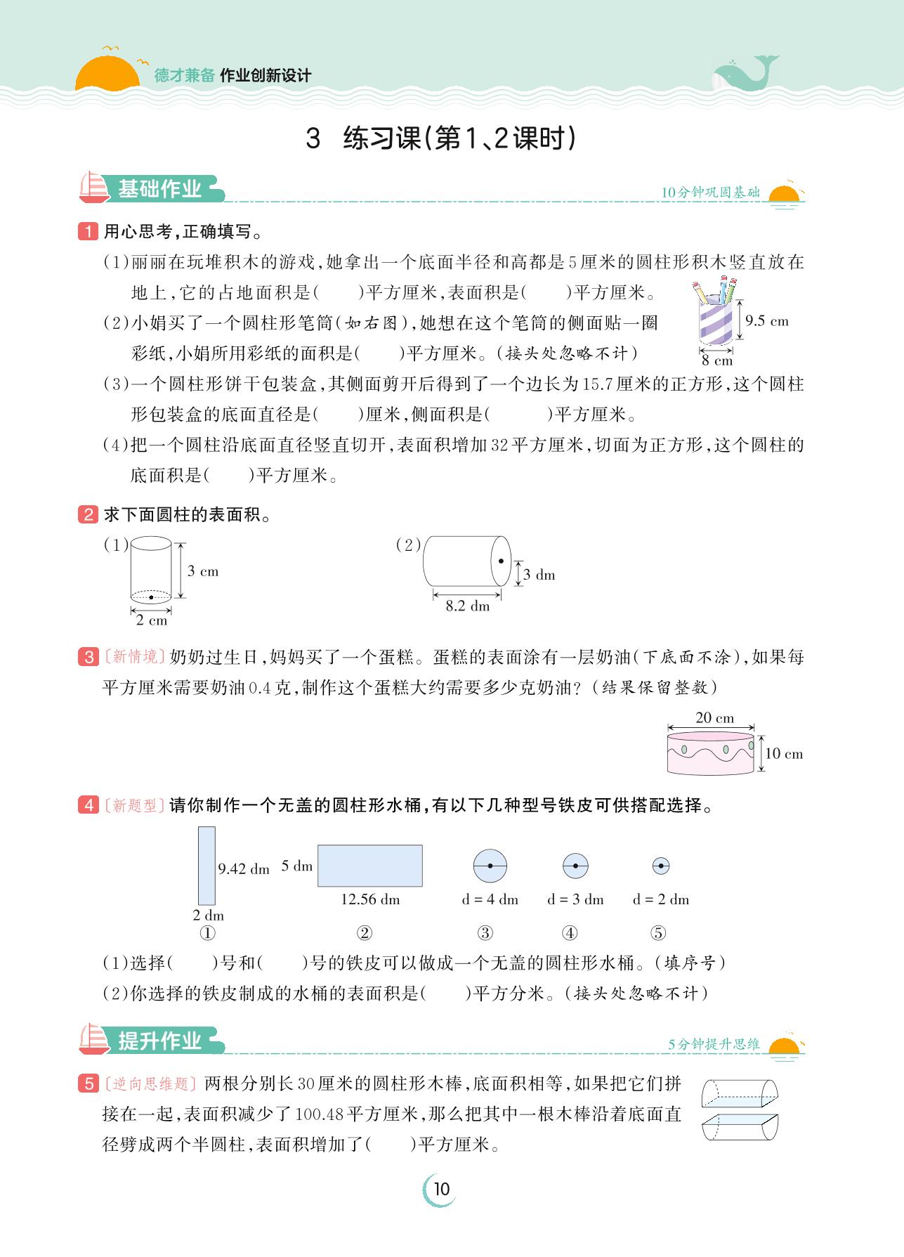 2023下册六年级数学苏教版 第二单元 圆柱和圆锥——3 练习课(第1、2课时)