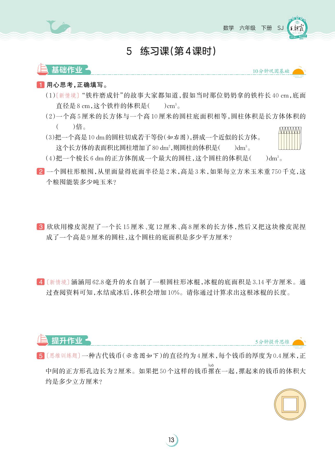2023下册六年级数学苏教版 第二单元 圆柱和圆锥——5 练习课(第4课时)