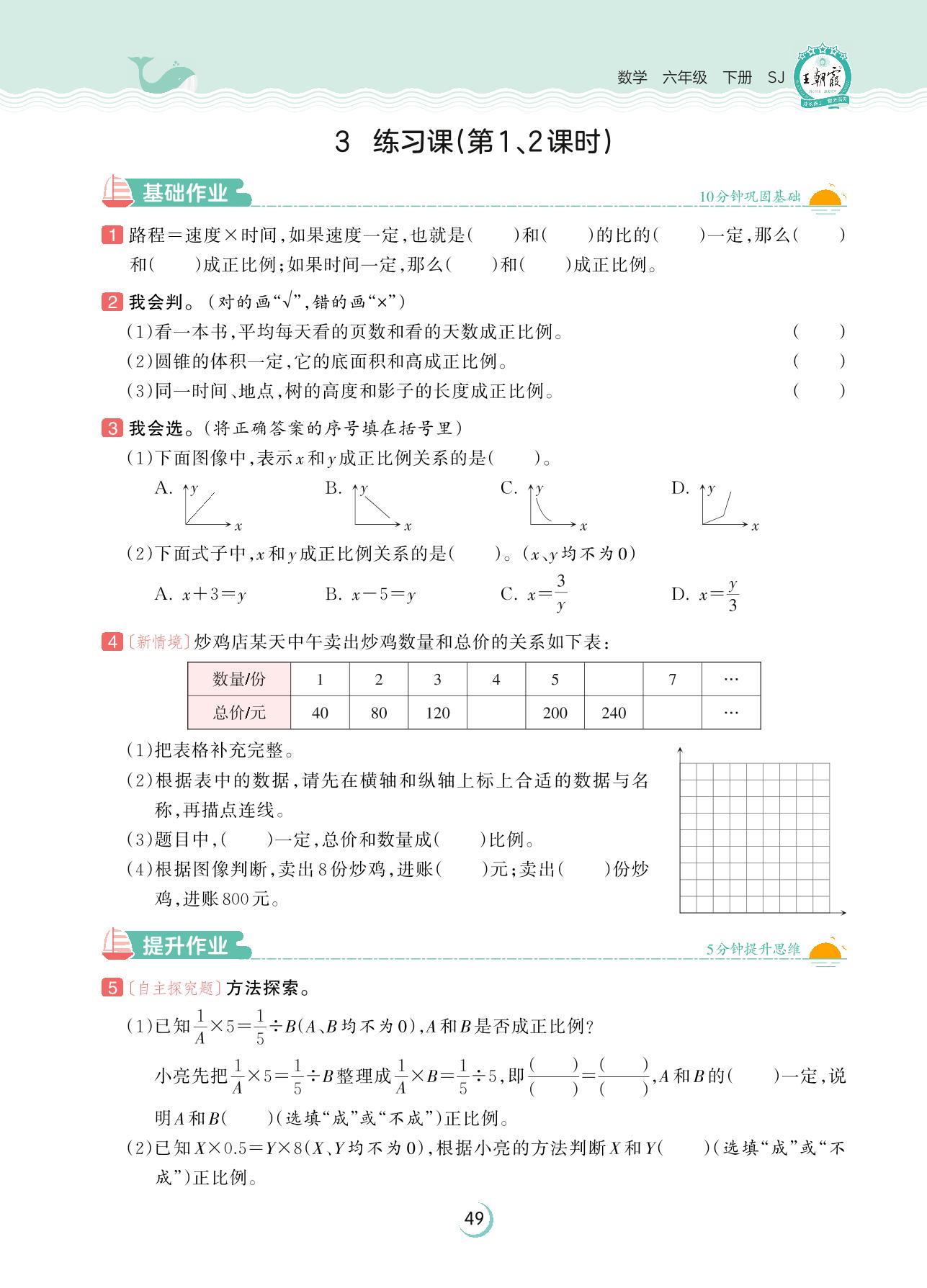 2023下册六年级数学苏教版 第六单元 正比例和反比例——3 练习课(第1、2课时)