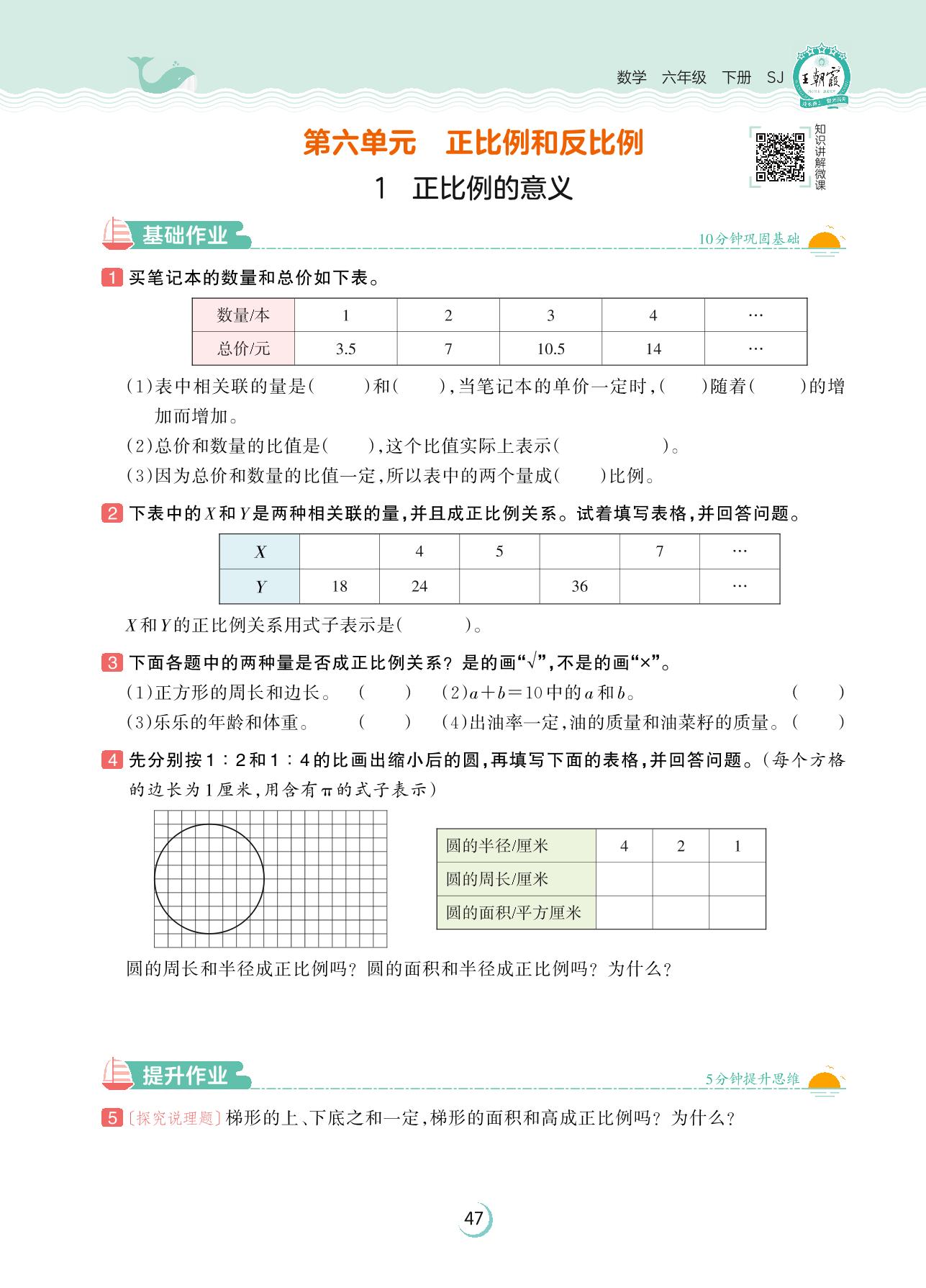 2023下册六年级数学苏教版 第六单元 正比例和反比例——1 正比例的意义