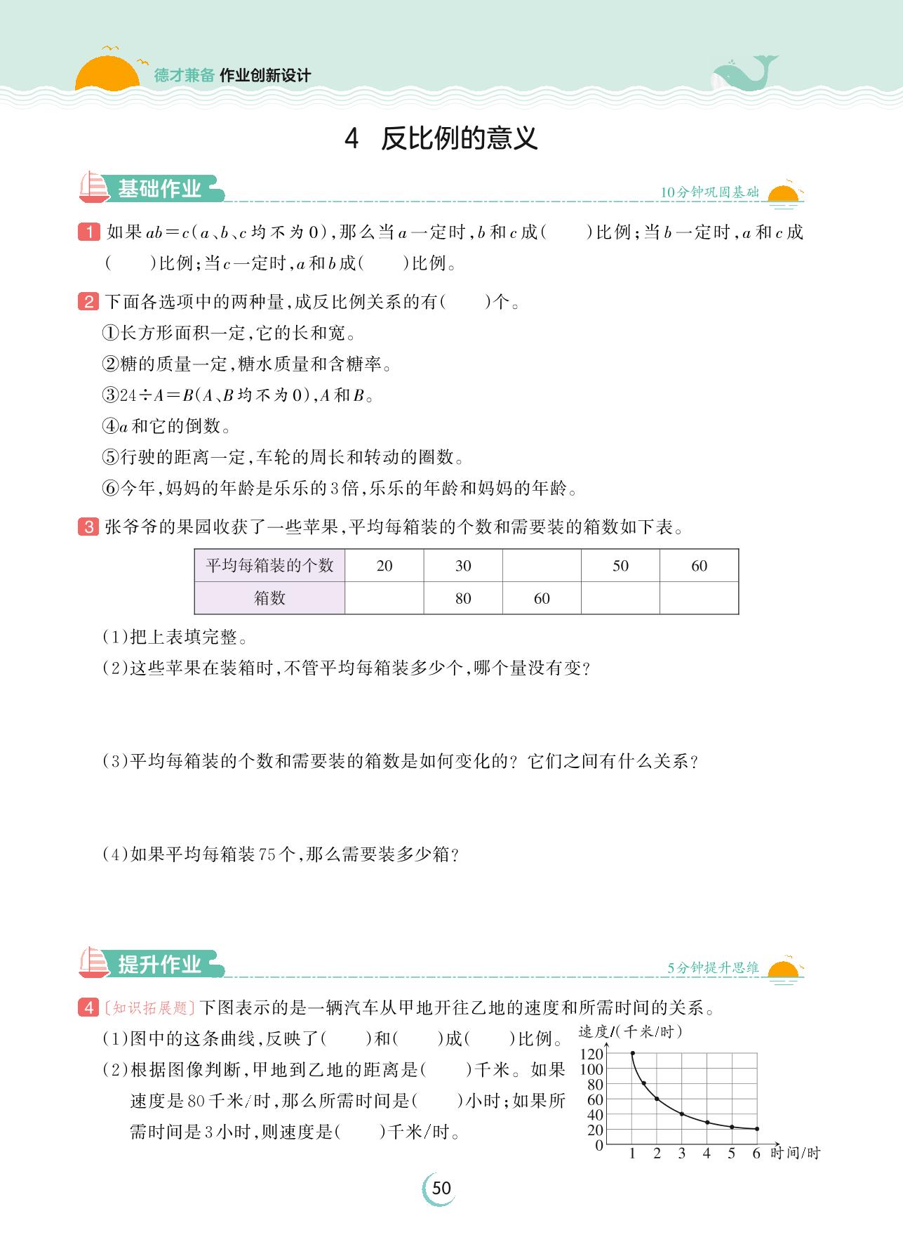 2023下册六年级数学苏教版 第六单元 正比例和反比例——4 反比例的意义