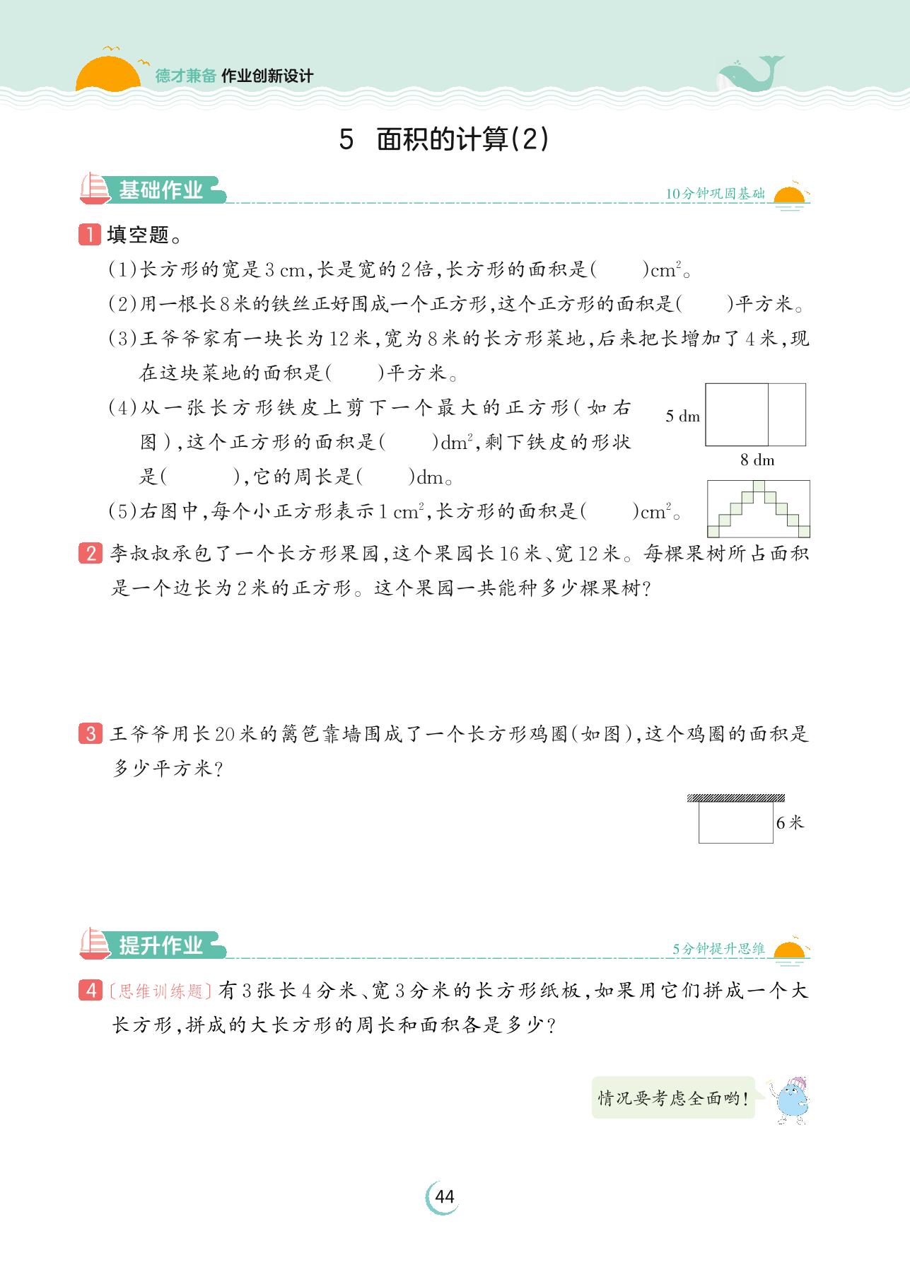 2023下册三年级数学苏教版 第六单元 长方形和正方形的面积——5 面积的计算(2)