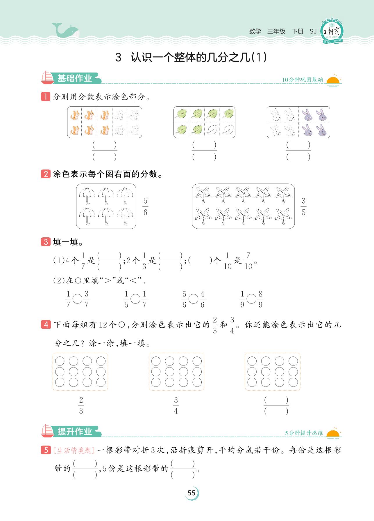 2023下册三年级数学苏教版 第七单元 分数的初步认识(二)——3 认识一个整体的几分之几(1)