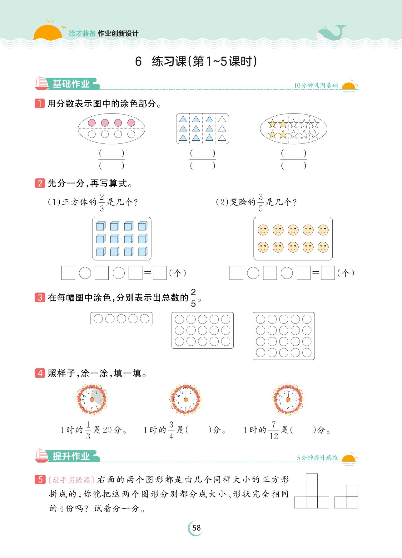 2023下册三年级数学苏教版 第七单元 分数的初步认识(二)——6 练习课(第1~5课时)