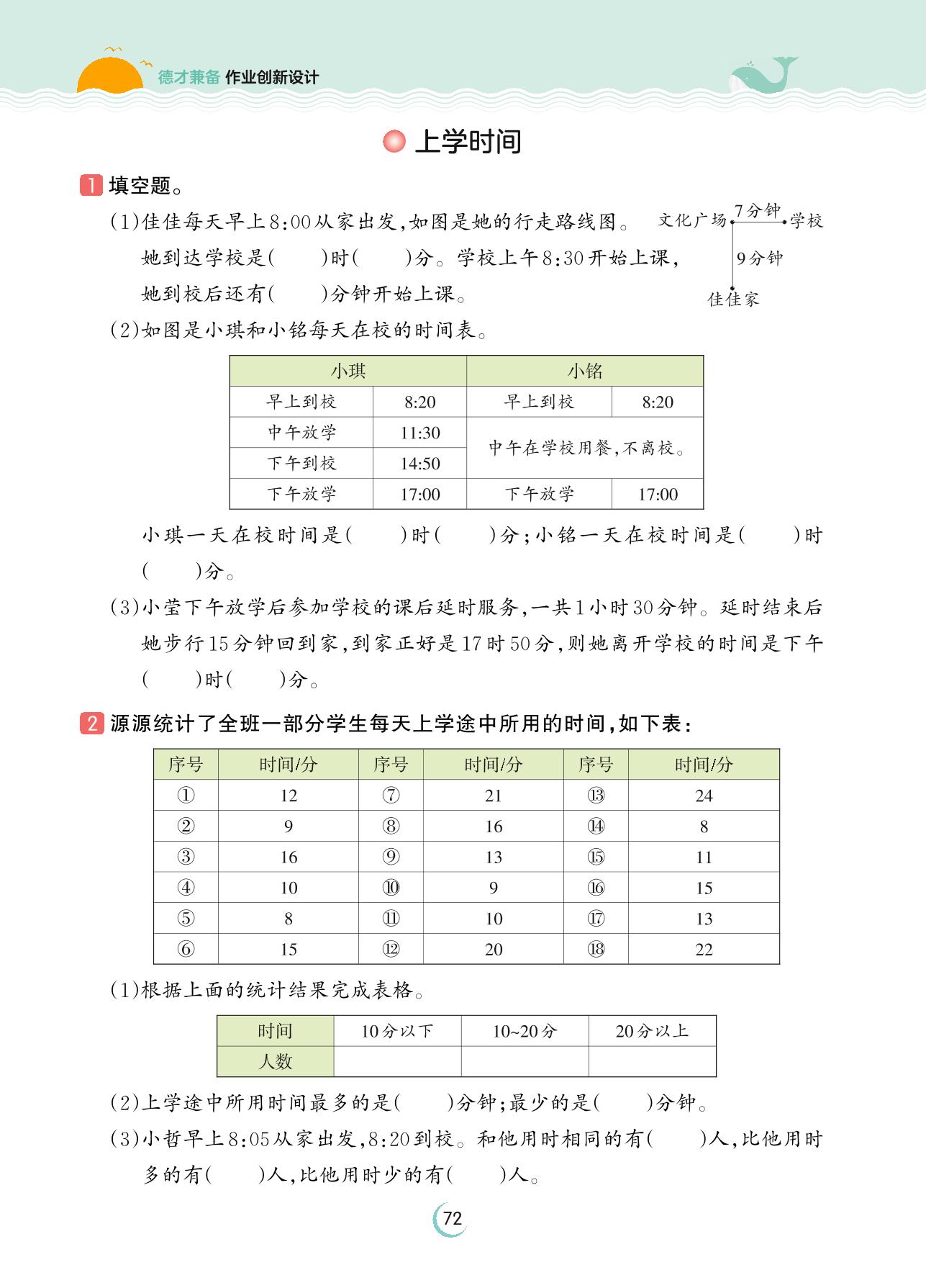 2023下册三年级数学苏教版 第九单元 数据的收集和整理(二)——上学时间