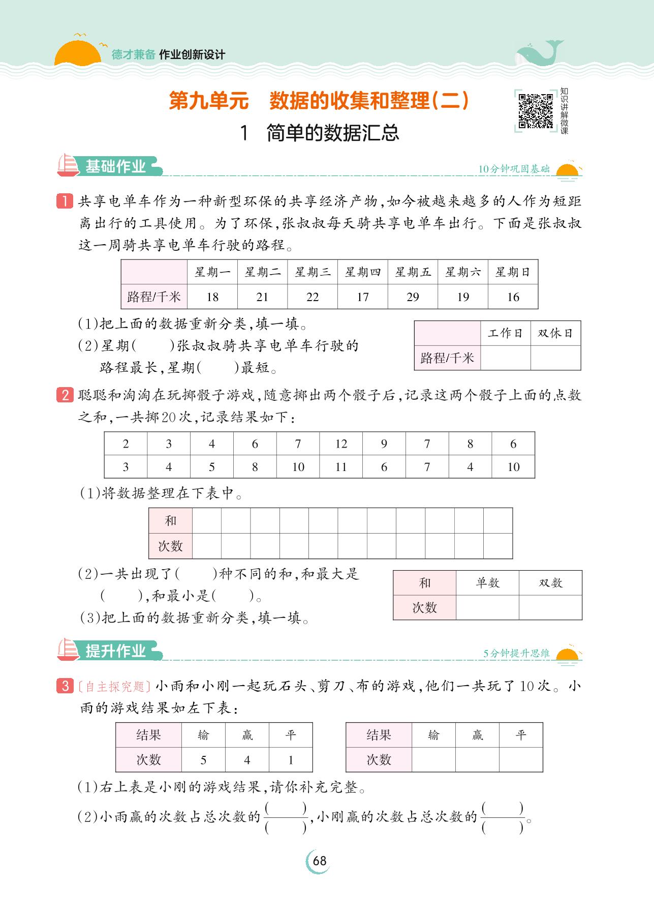 2023下册三年级数学苏教版 第九单元 数据的收集和整理(二)——1 简单的数据汇总