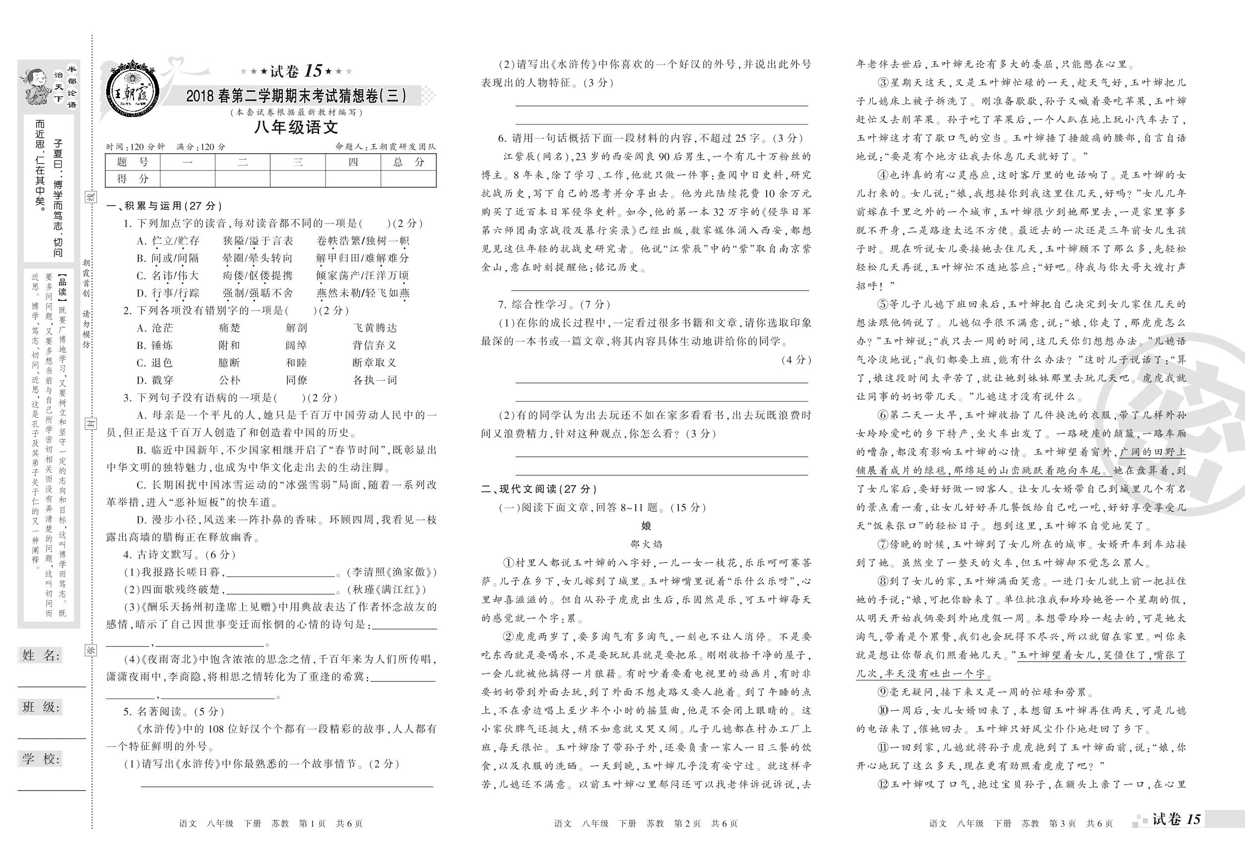 王朝霞期末猜想卷(三)八年级下册语文(苏教版)_R210802184926【15】